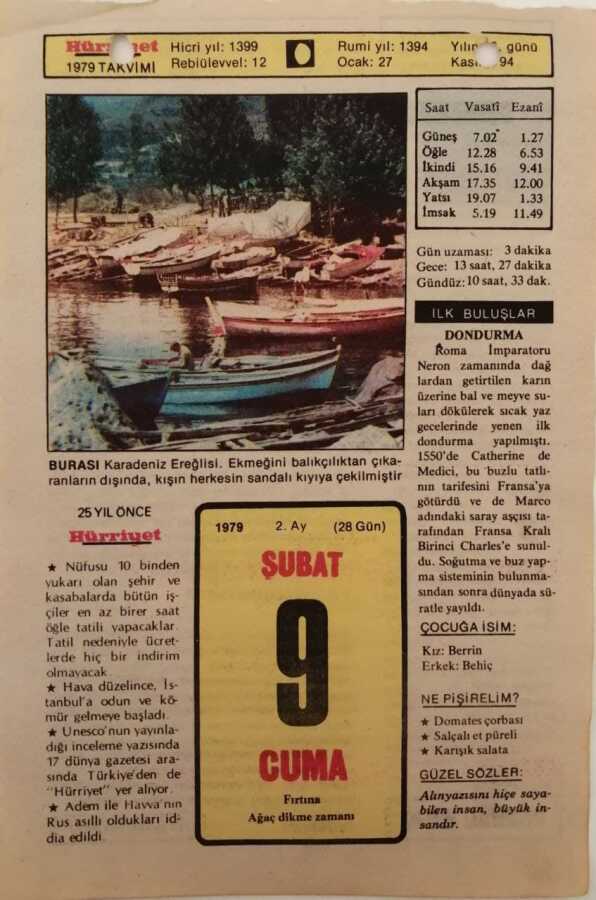9 Şubat 1979 Takvim Yaprağı - Doğum Günü Hediyesi EFM(N)7601