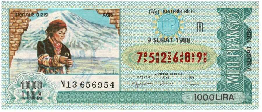9 Şubat 1988 Beştebir Bilet PYB3197