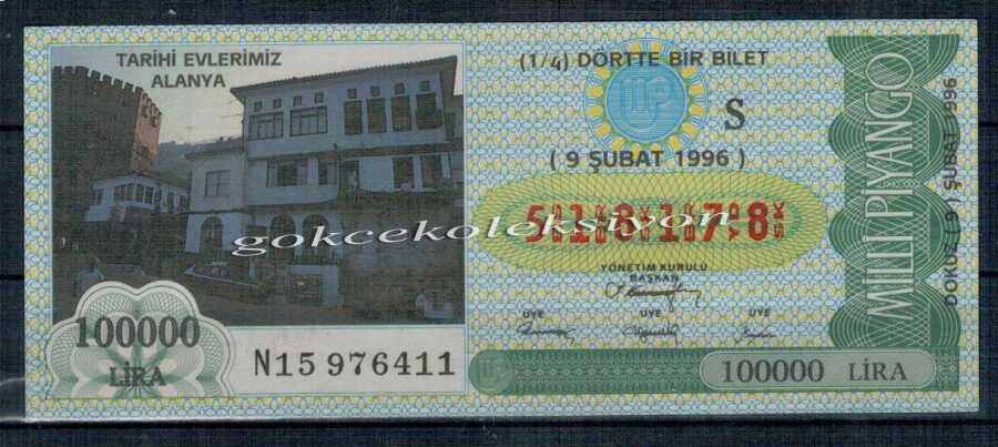 9 Şubat 1996 Çeyrek Bilet PYB2288