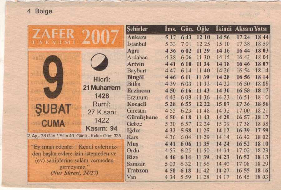9 Şubat 2007 Takvim Yaprağı EFM(N)5528