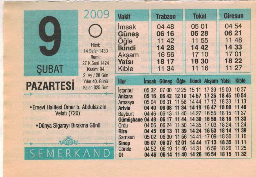 9 Şubat 2009 Takvim Yaprağı EFM(N)5614