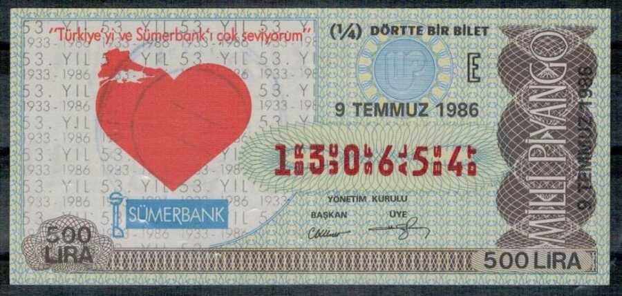 9 Temmuz 1986 Çeyrek Bilet PYB278