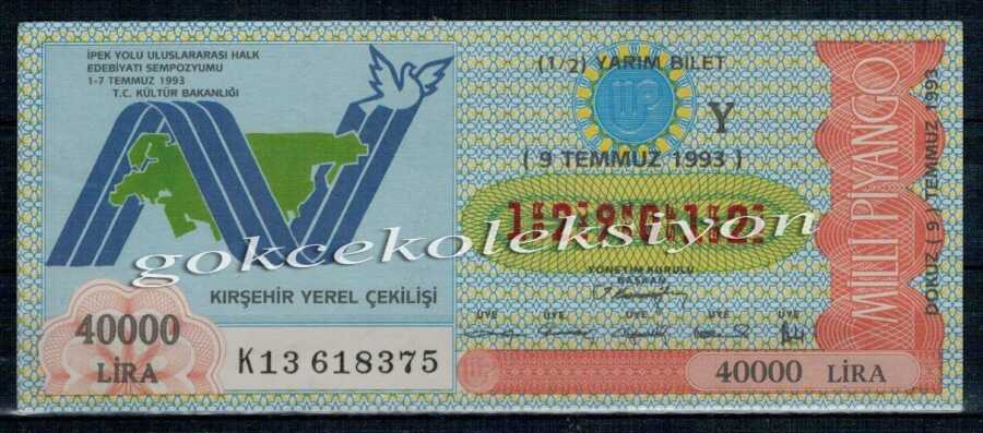 9 Temmuz 1993 Yarım Bİlet PYB2080