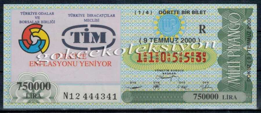 9 Temmuz 2000 Çeyrek Bilet PYB1743