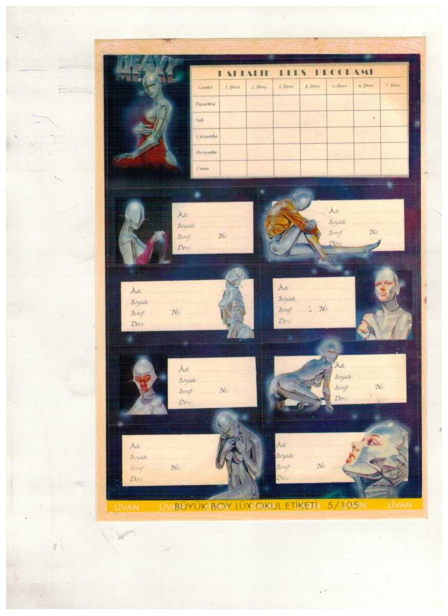90’lar Heavy Metal Fütüristik Robot Temalı Okul Etiket Seti – Livan Büyük Boy Lüks AOB6127