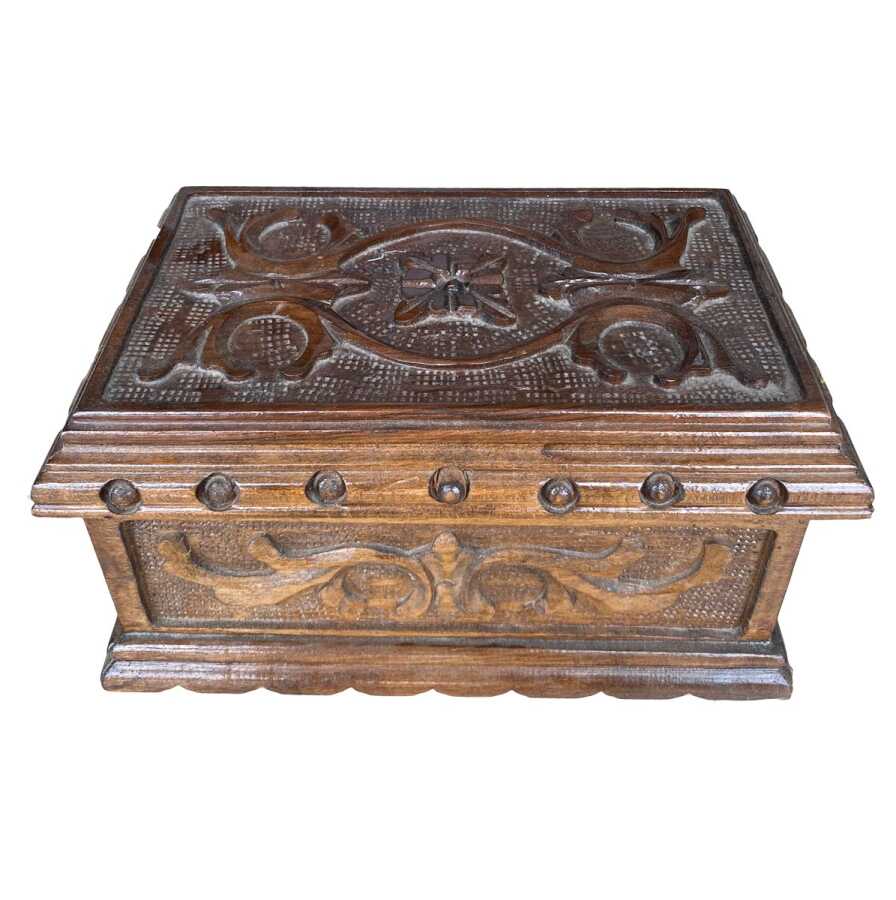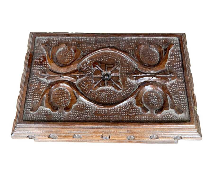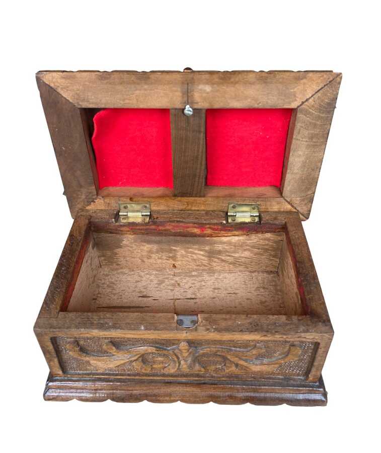 Geleneksel Anadolu el sanatlarının zarif örneklerinden biri olan bu ahşap oyma sandık, kompakt boyutu ve ince işçiligiyle dikkat çeken özel bir parçadır.