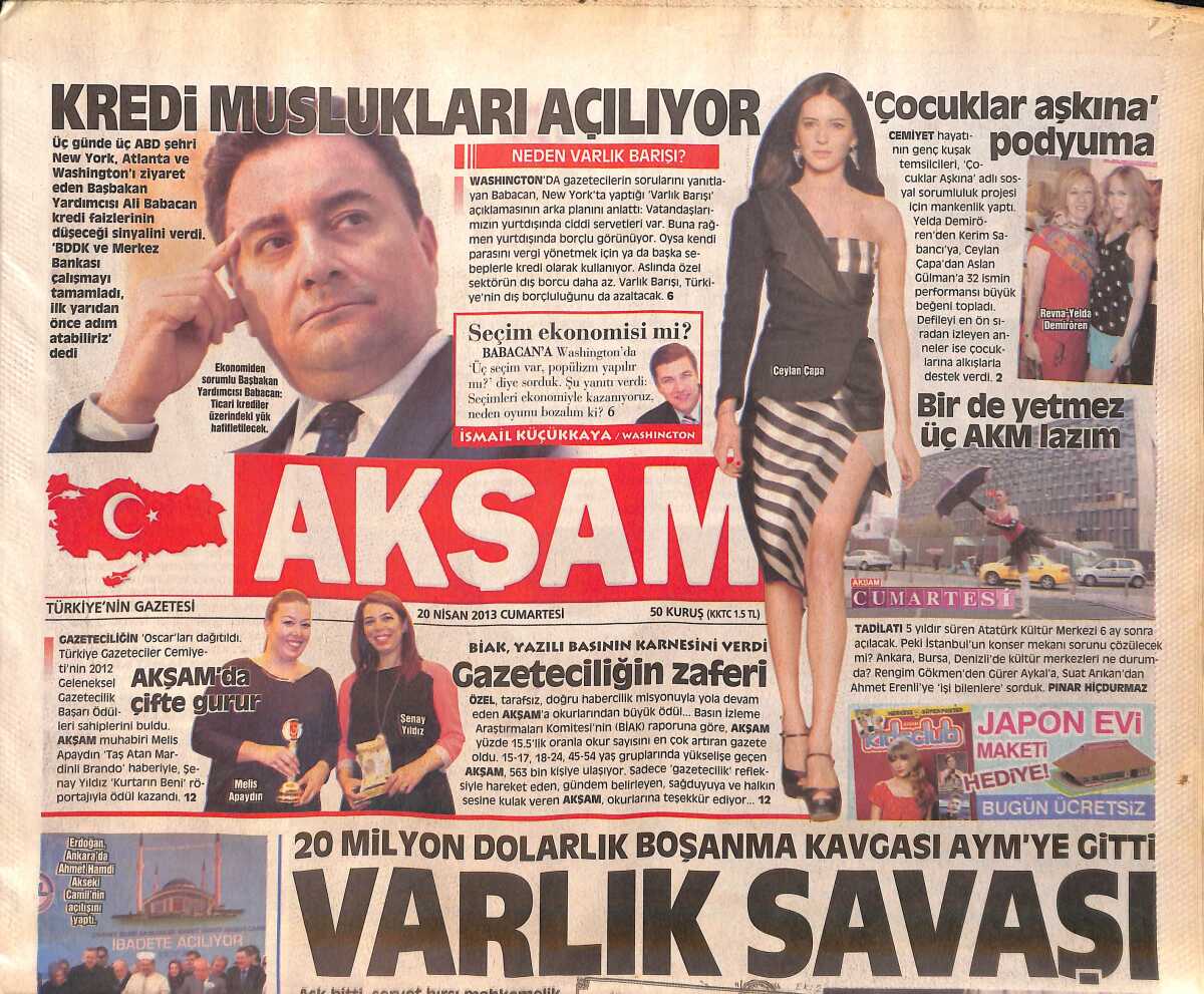 Akşam Gazetesi 20 Nisan 2013 - Galatasaray Çok Şanslı - MHP Alsancak'ta Bayrak Açacak GZ160062