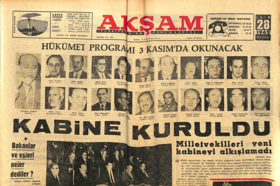 Akşam Gazetesi - 28 Ekim 1965 - Kabine Kuruldu GZ99913