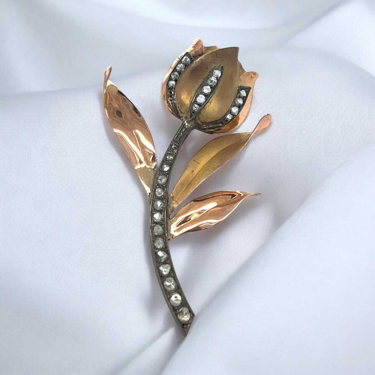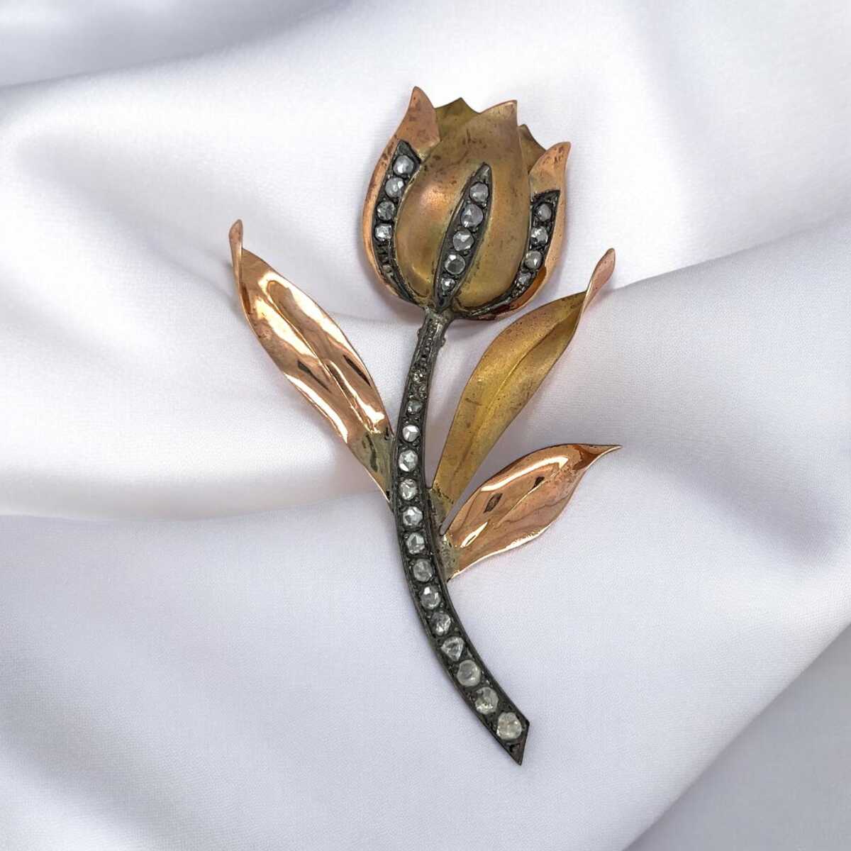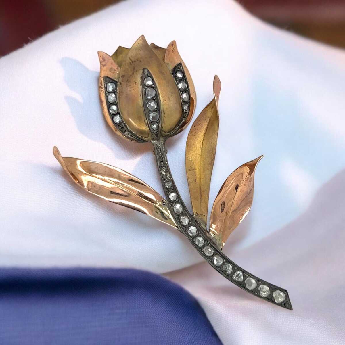 Antika 8 Ayar Elmas Taşlı Broş ELM153 #12.28