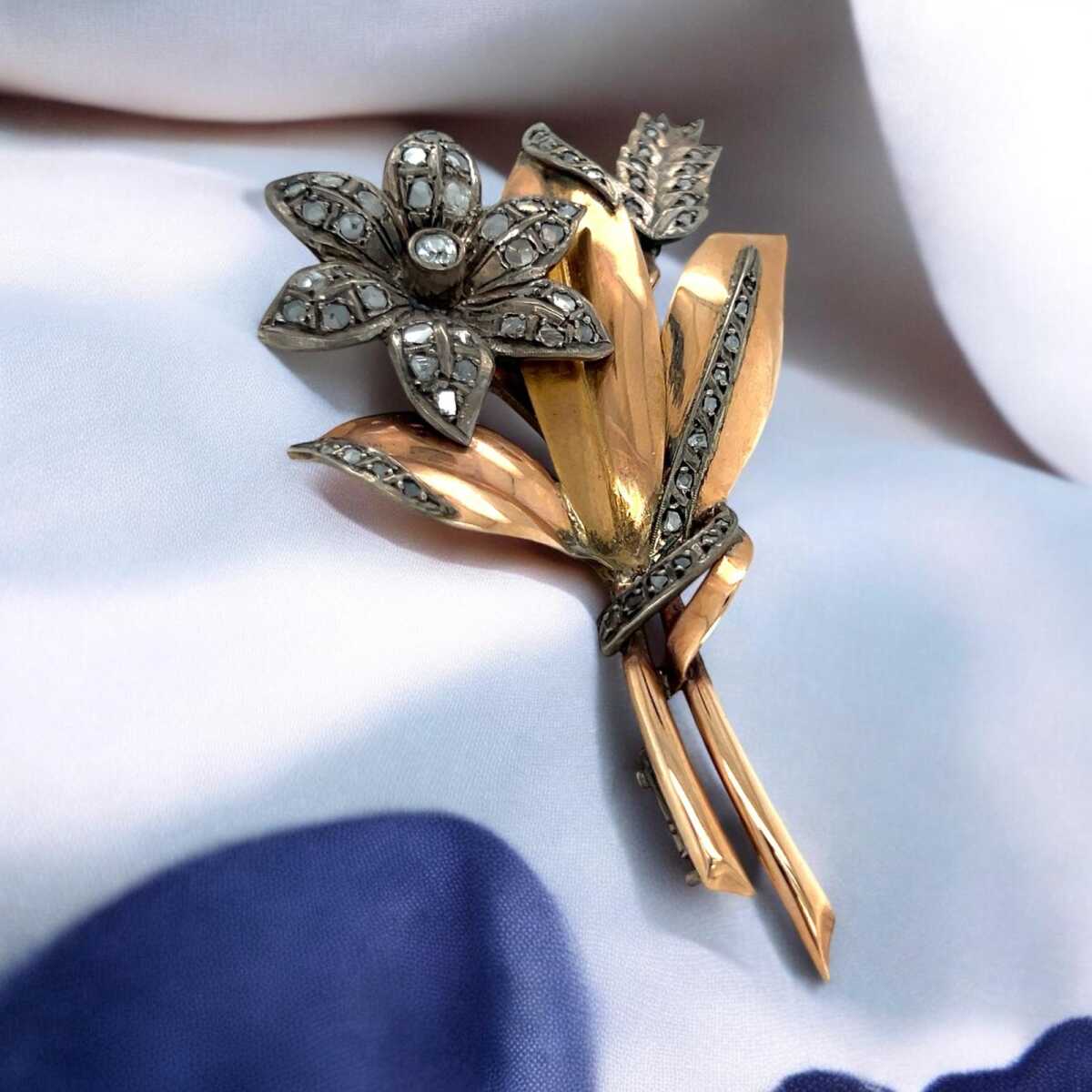 Antika 8 Ayar Elmas Taşlı Broş ELM153 #12.28