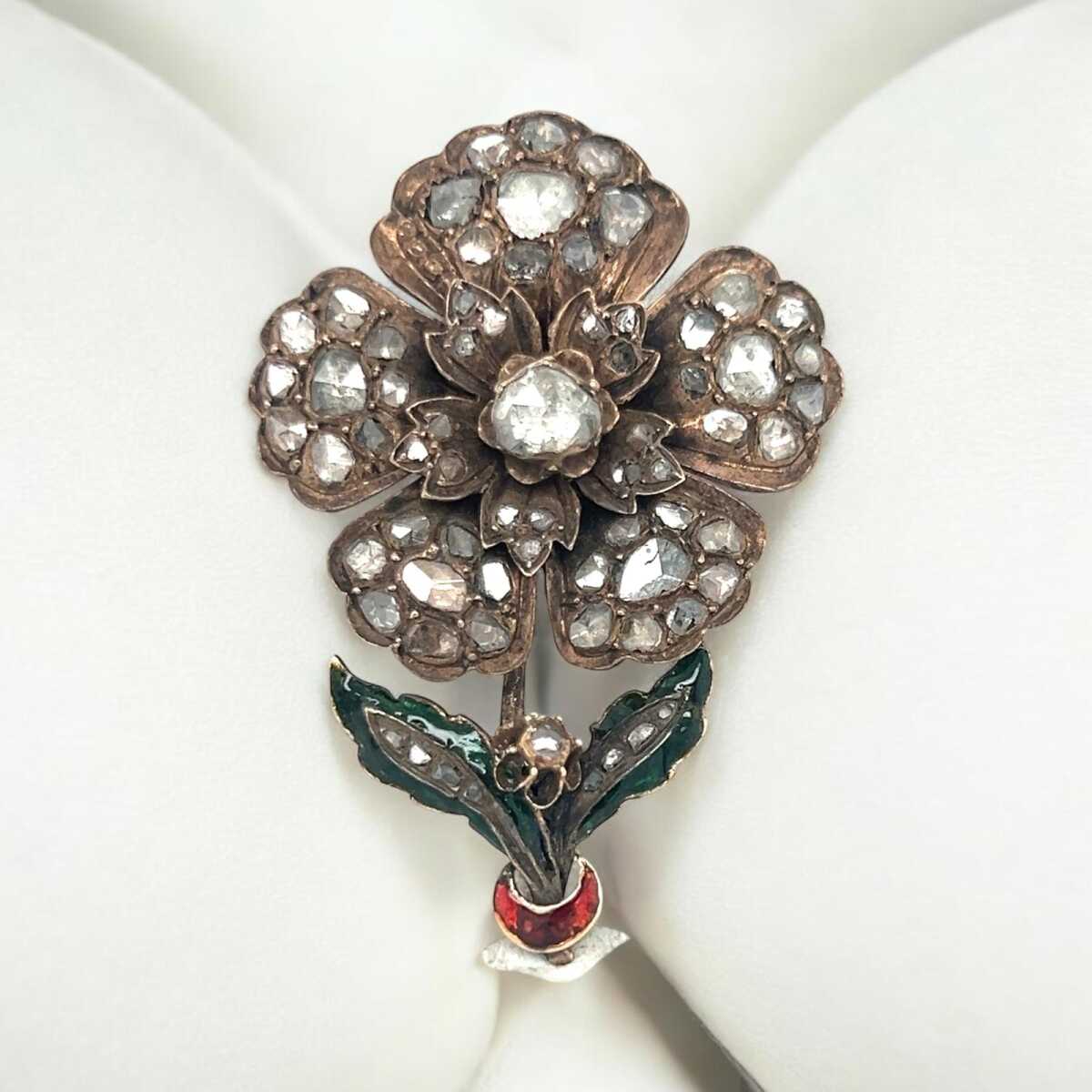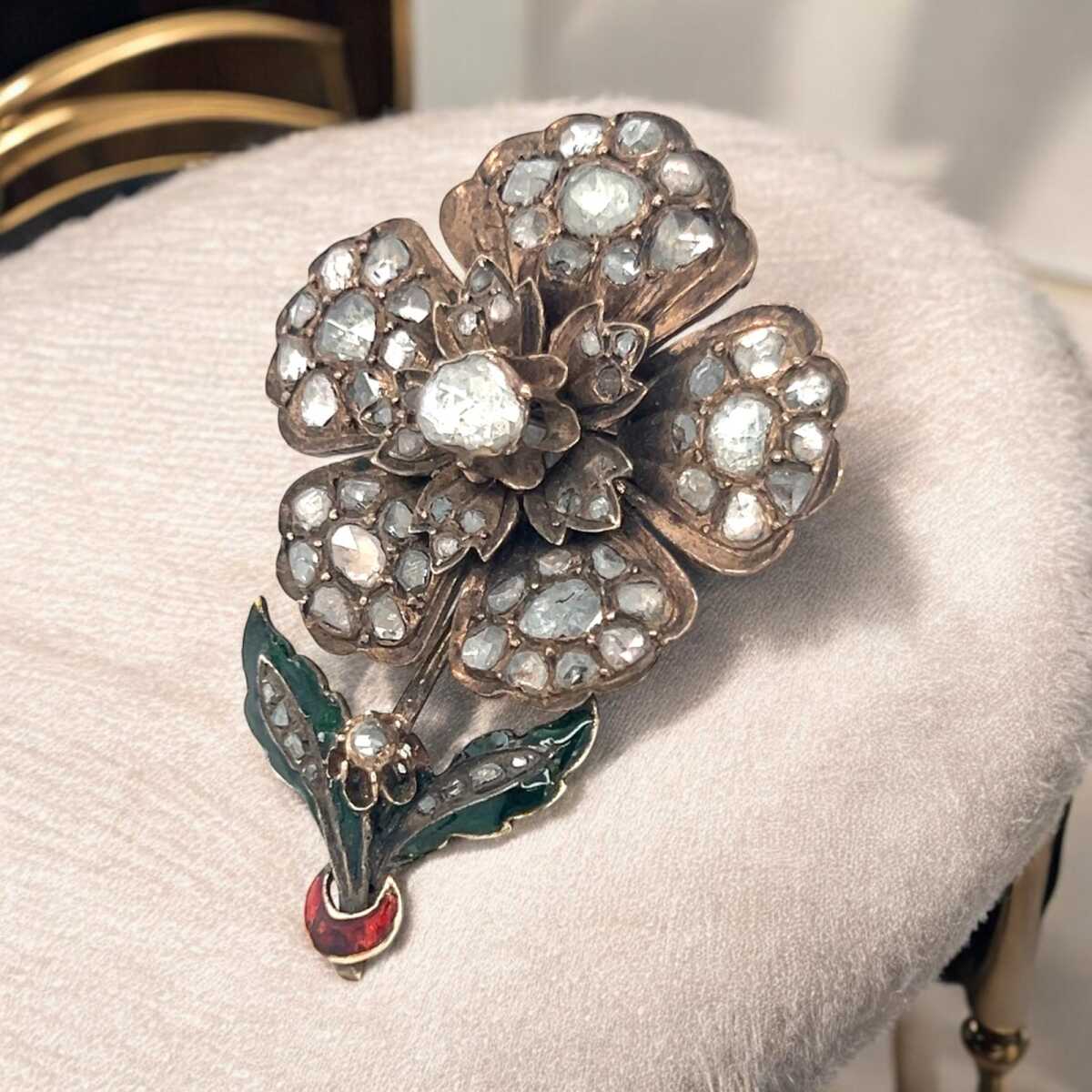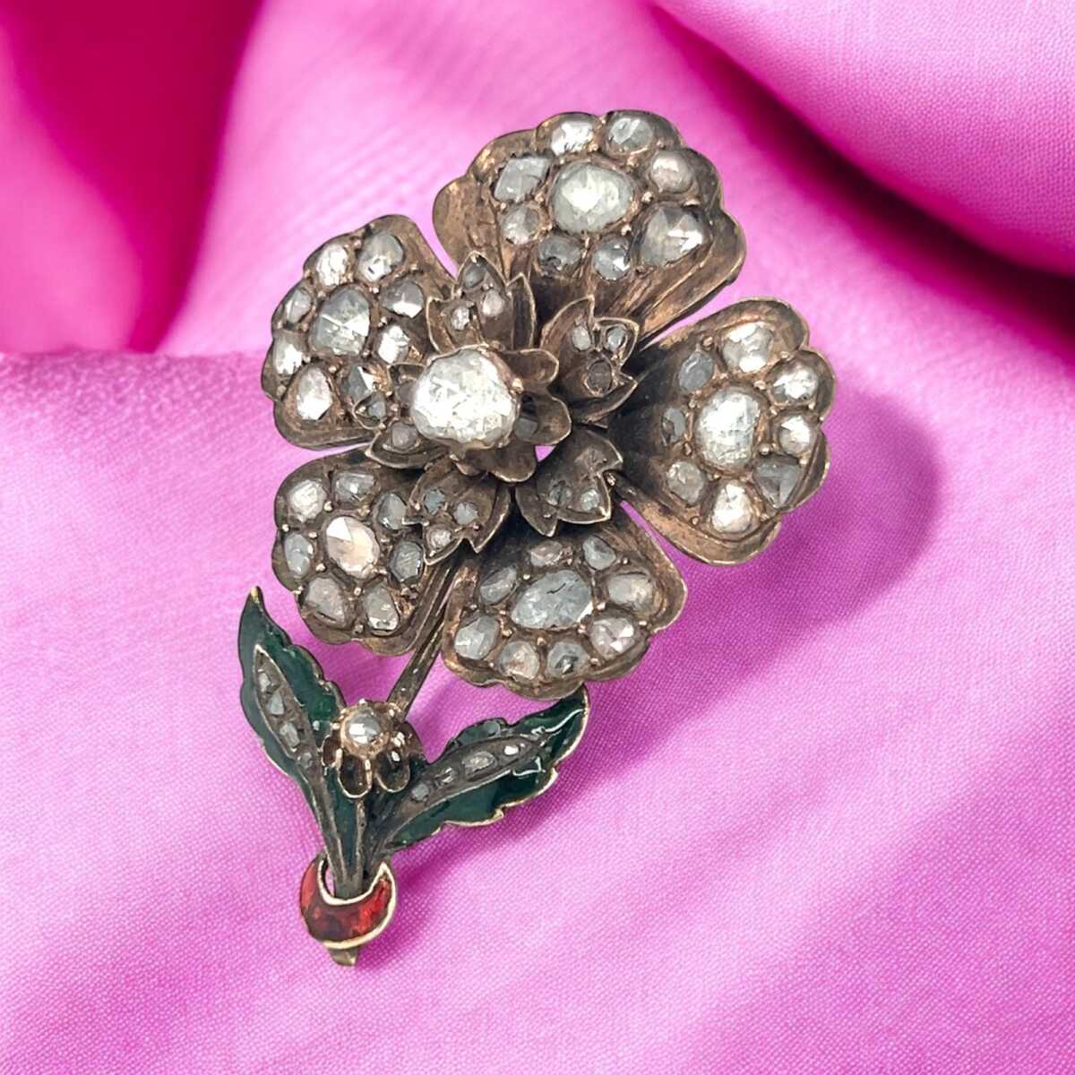 Antika 8 Ayar Elmas Taşlı Broş ELM153 #12.28
