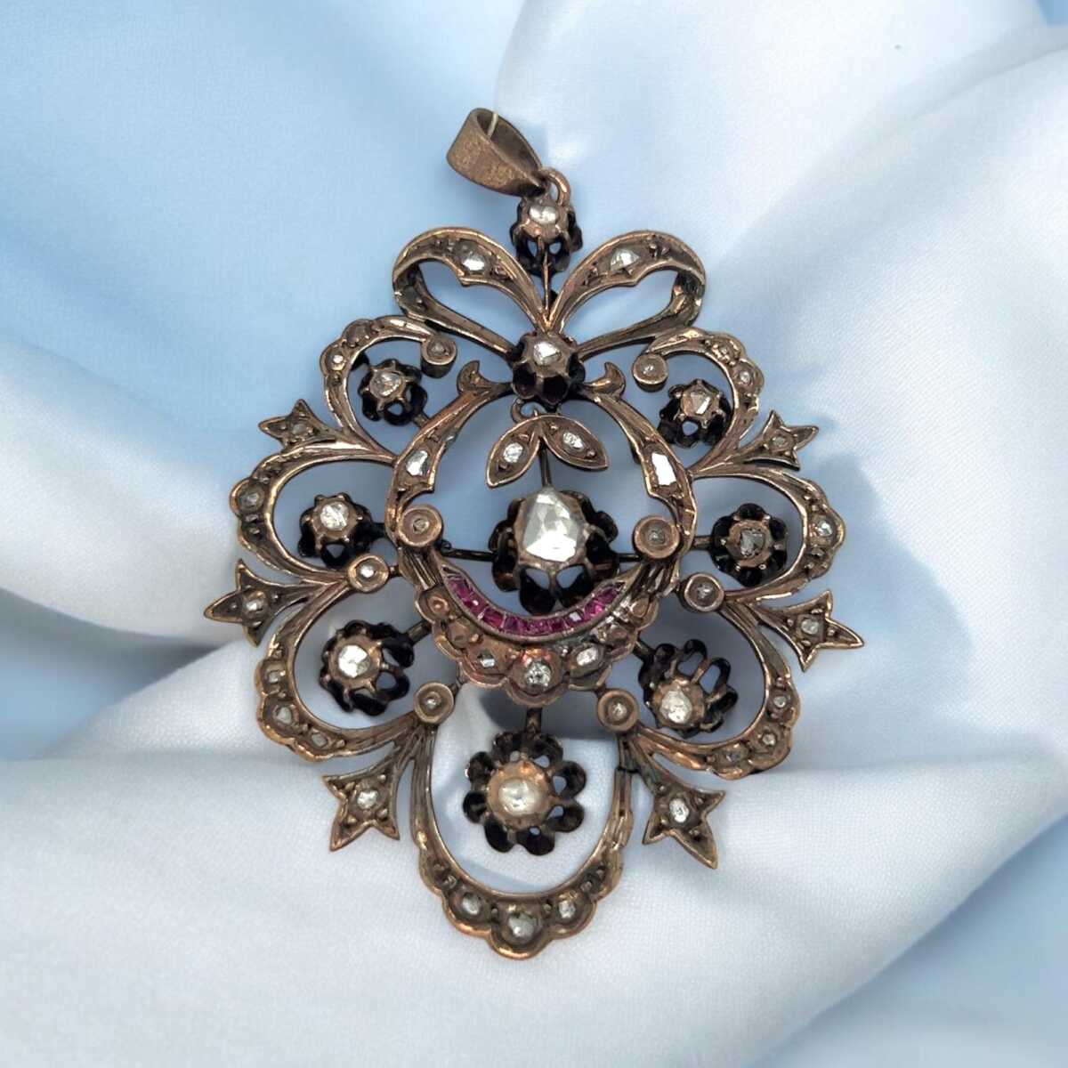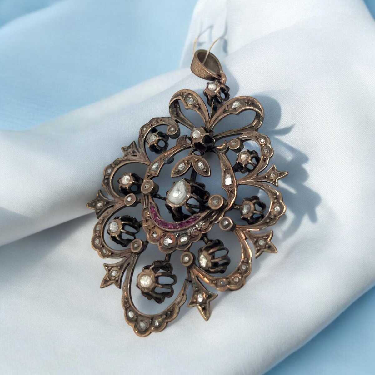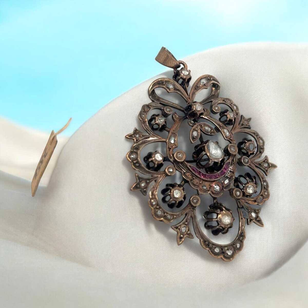 Antika 14 Ayar Elmas ve Yakut Taşlı Kolye Ucu ELM351 #10