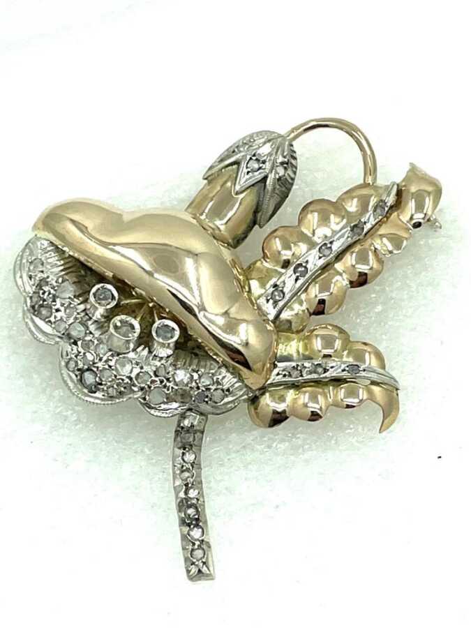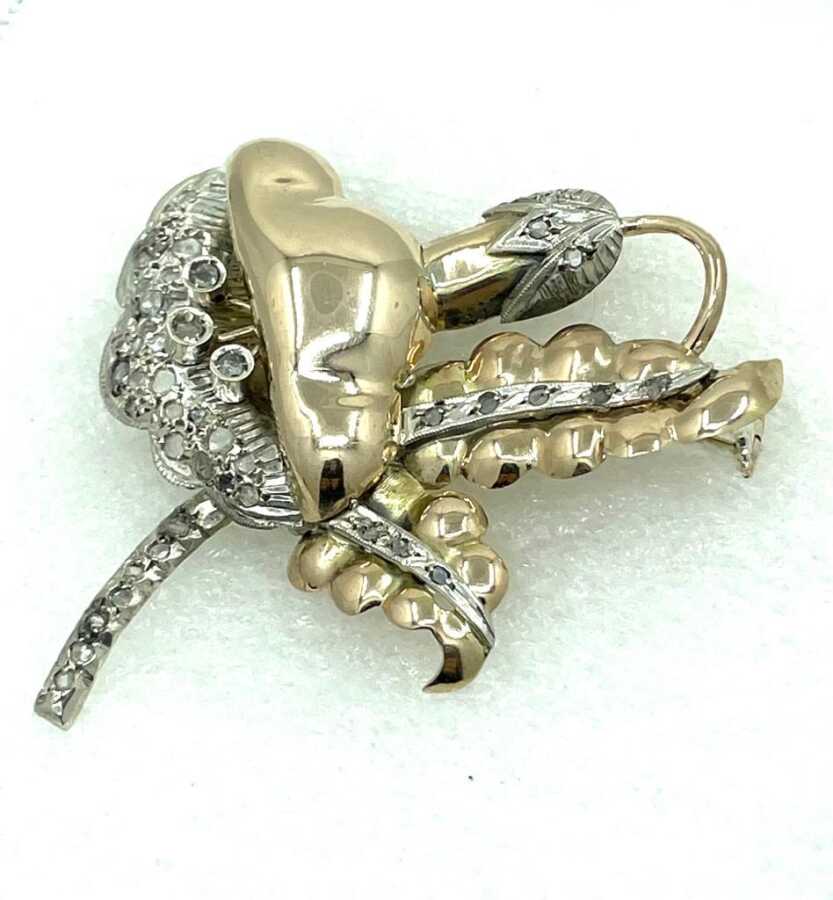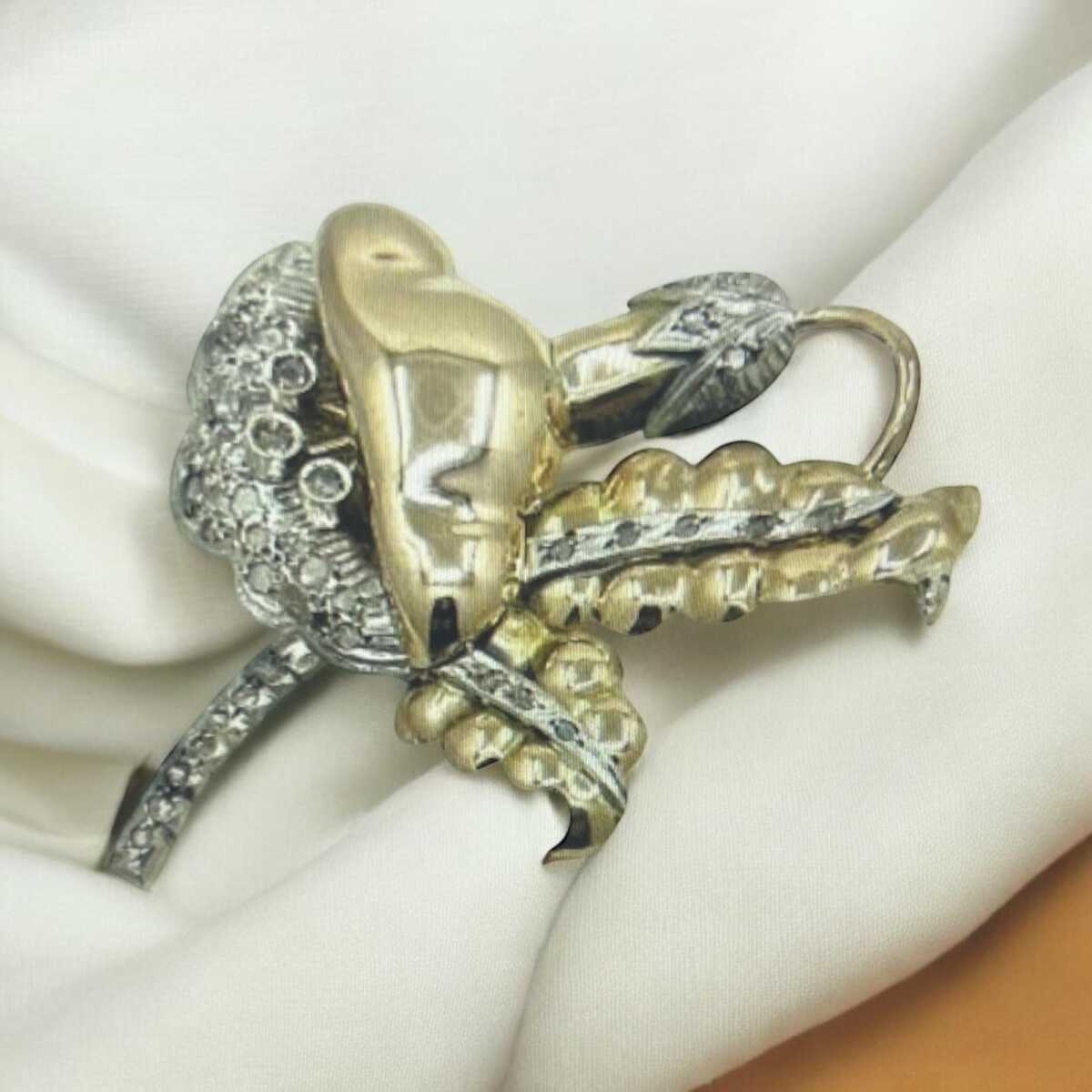 Antika 8 Ayar Elmas Taşlı Broş ELM153 #12.28
