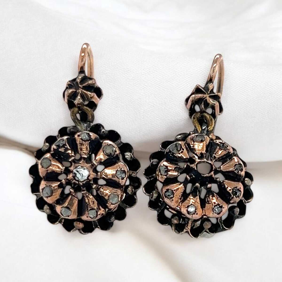 Osmanlı Antika Elmas Taşlı Gül Küpe ELM237 #23.07