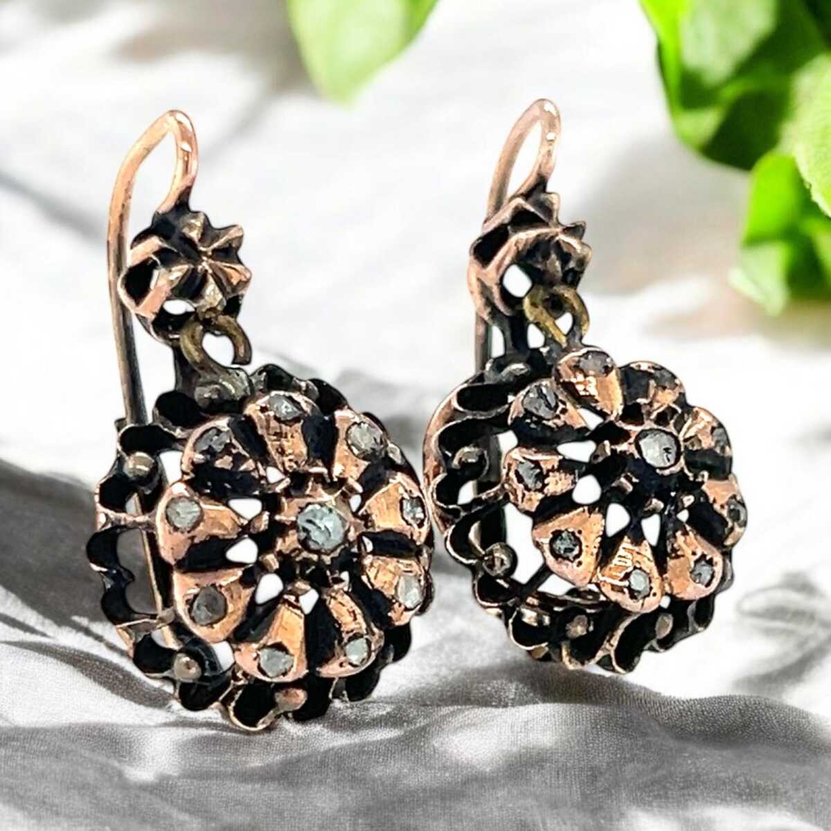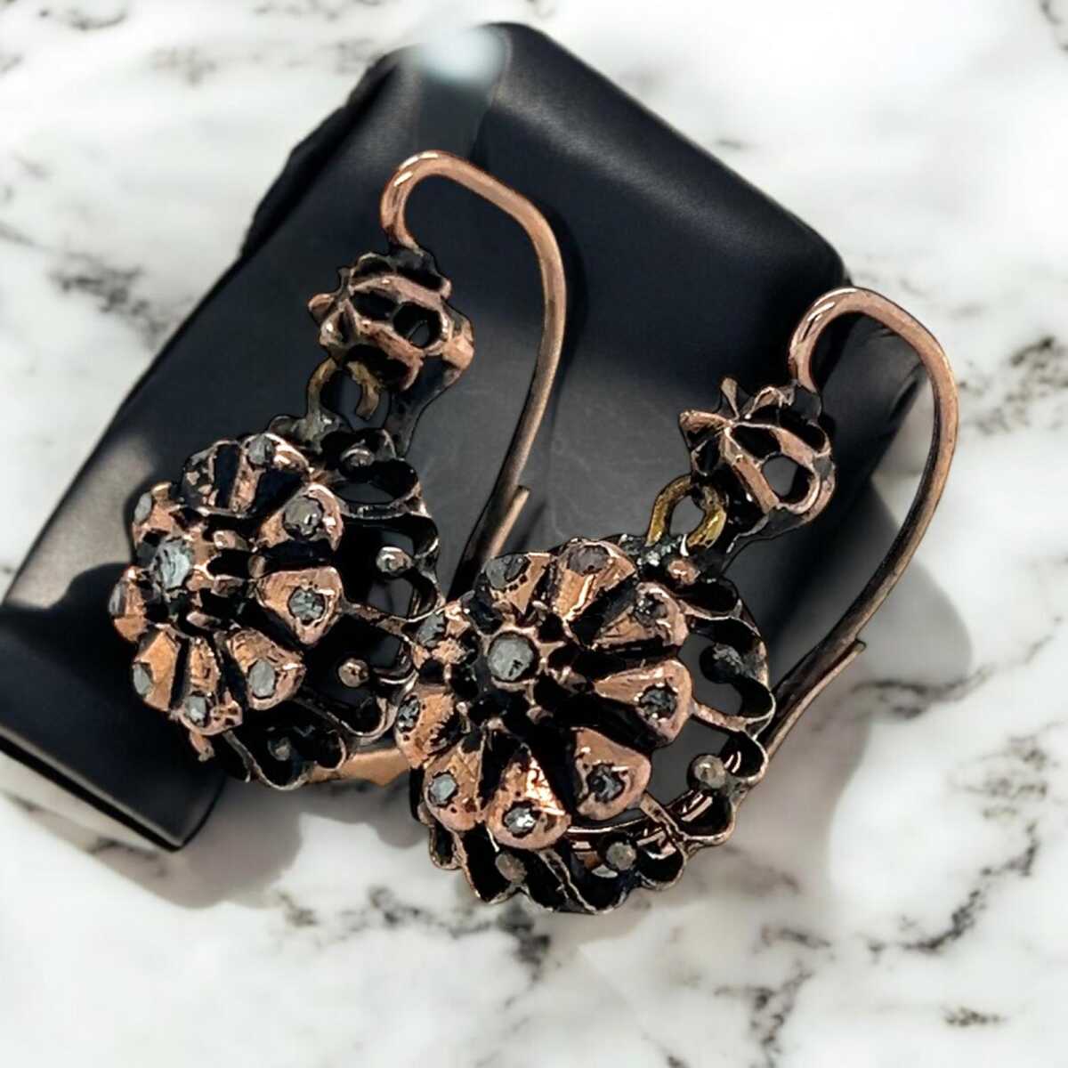 Antika 8 Ayar Elmas Taşlı Gül Küpe ELM332 #5.52