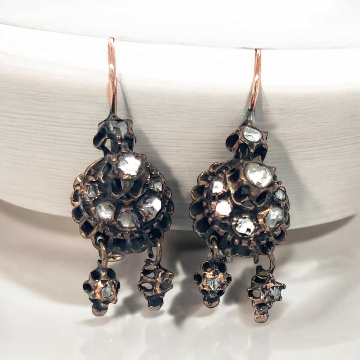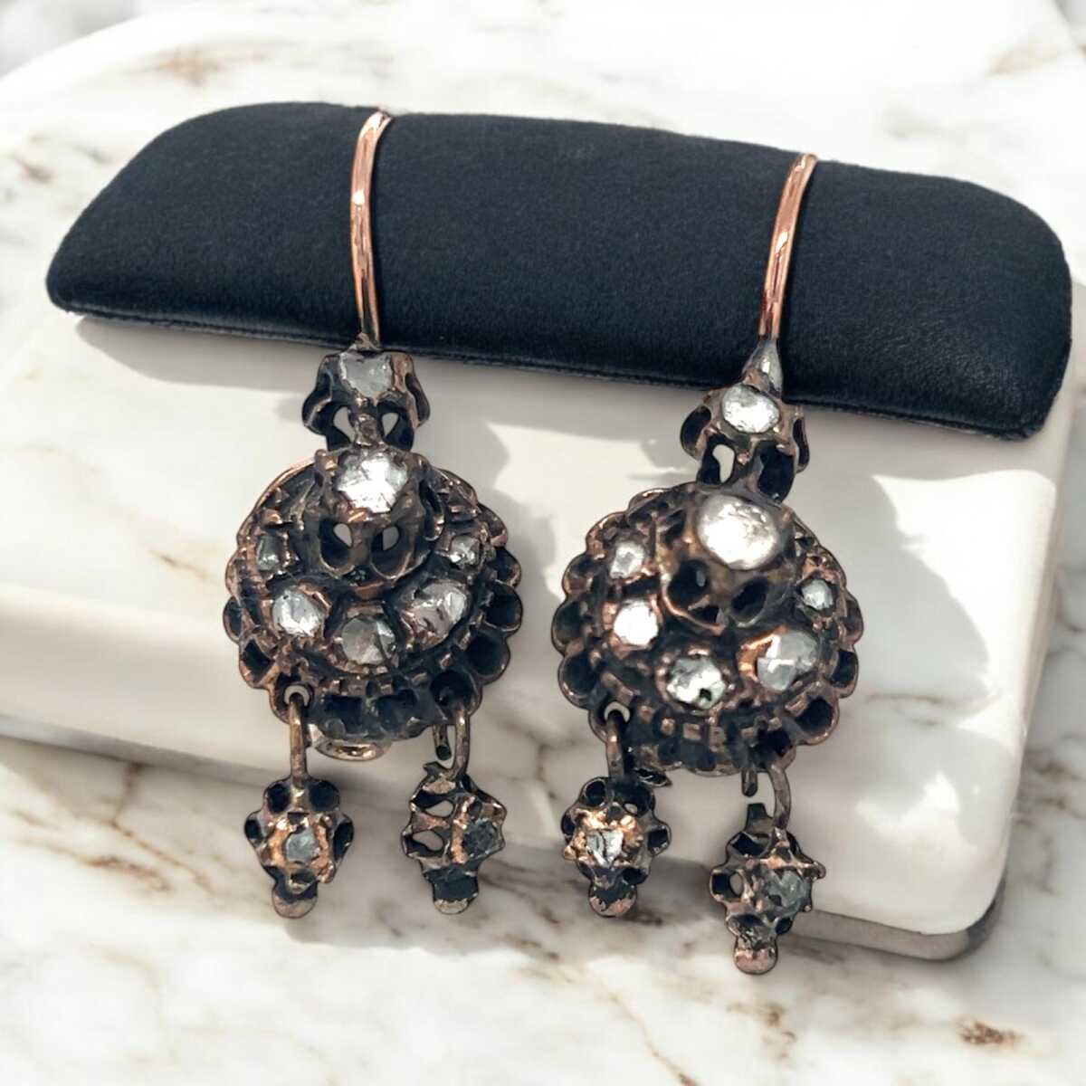 Osmanlı Antika Elmas Taşlı Gül Küpe ELM237 #23.07