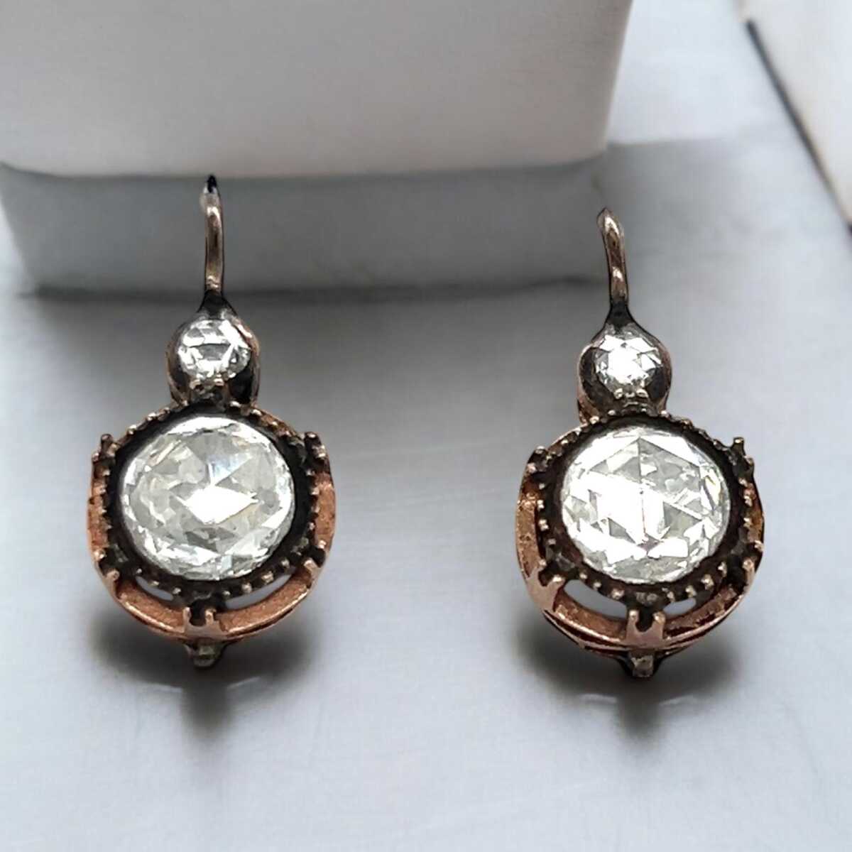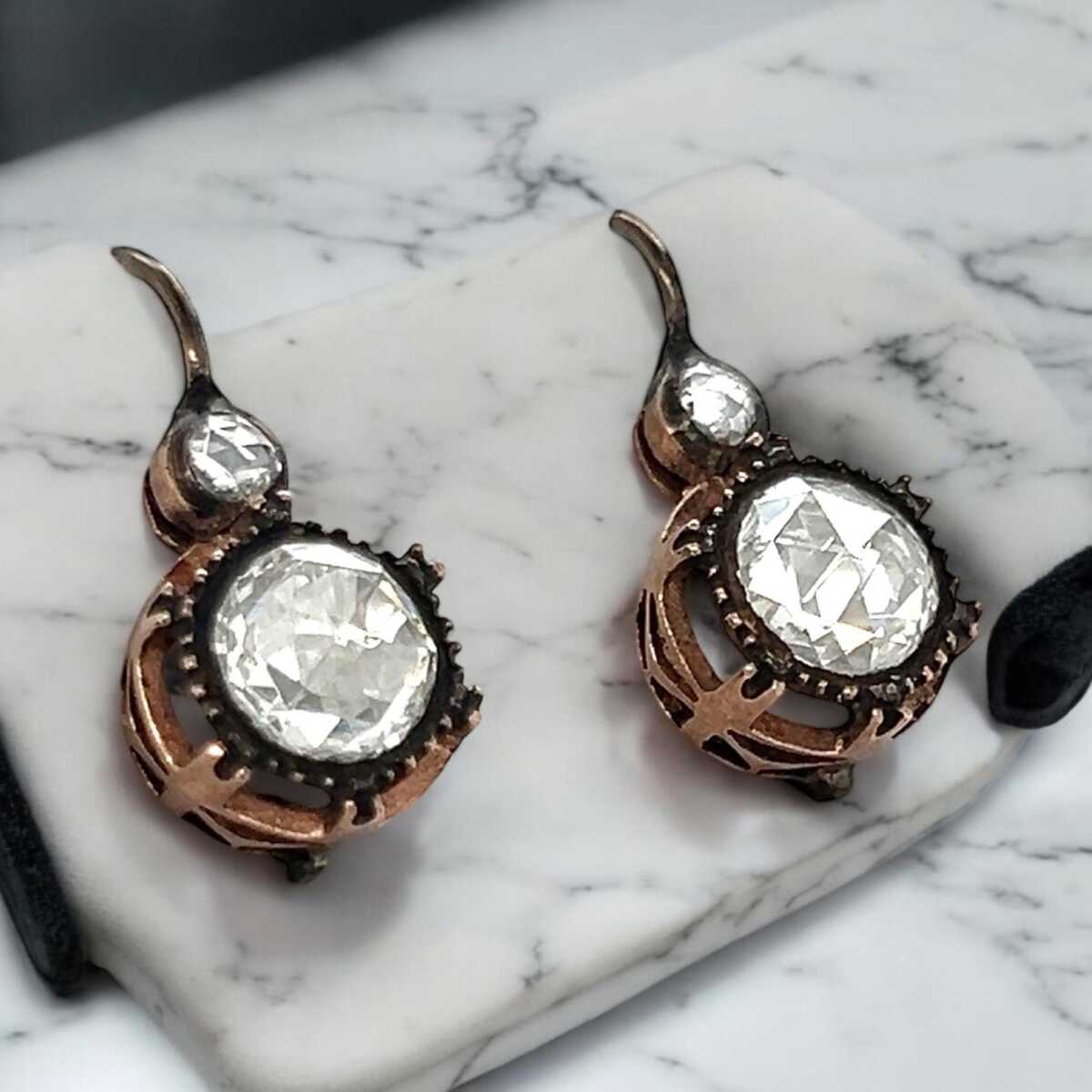 Antika 8 Ayar Elmas Taşlı Gül Küpe ELM332 #5.52