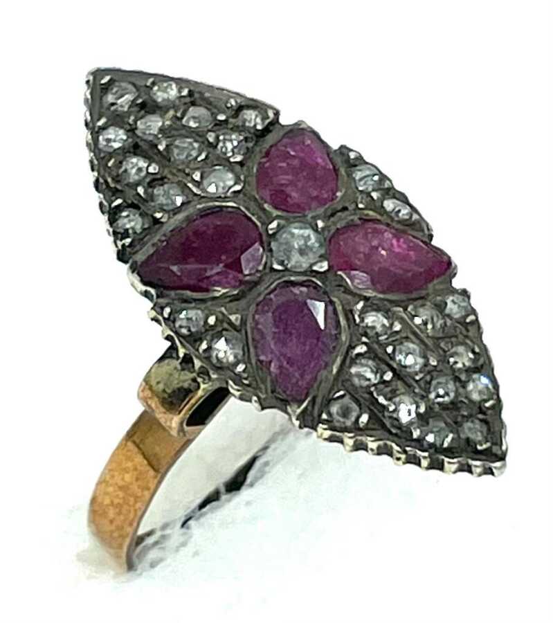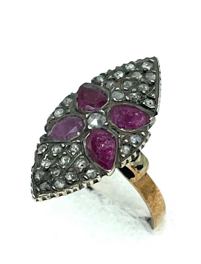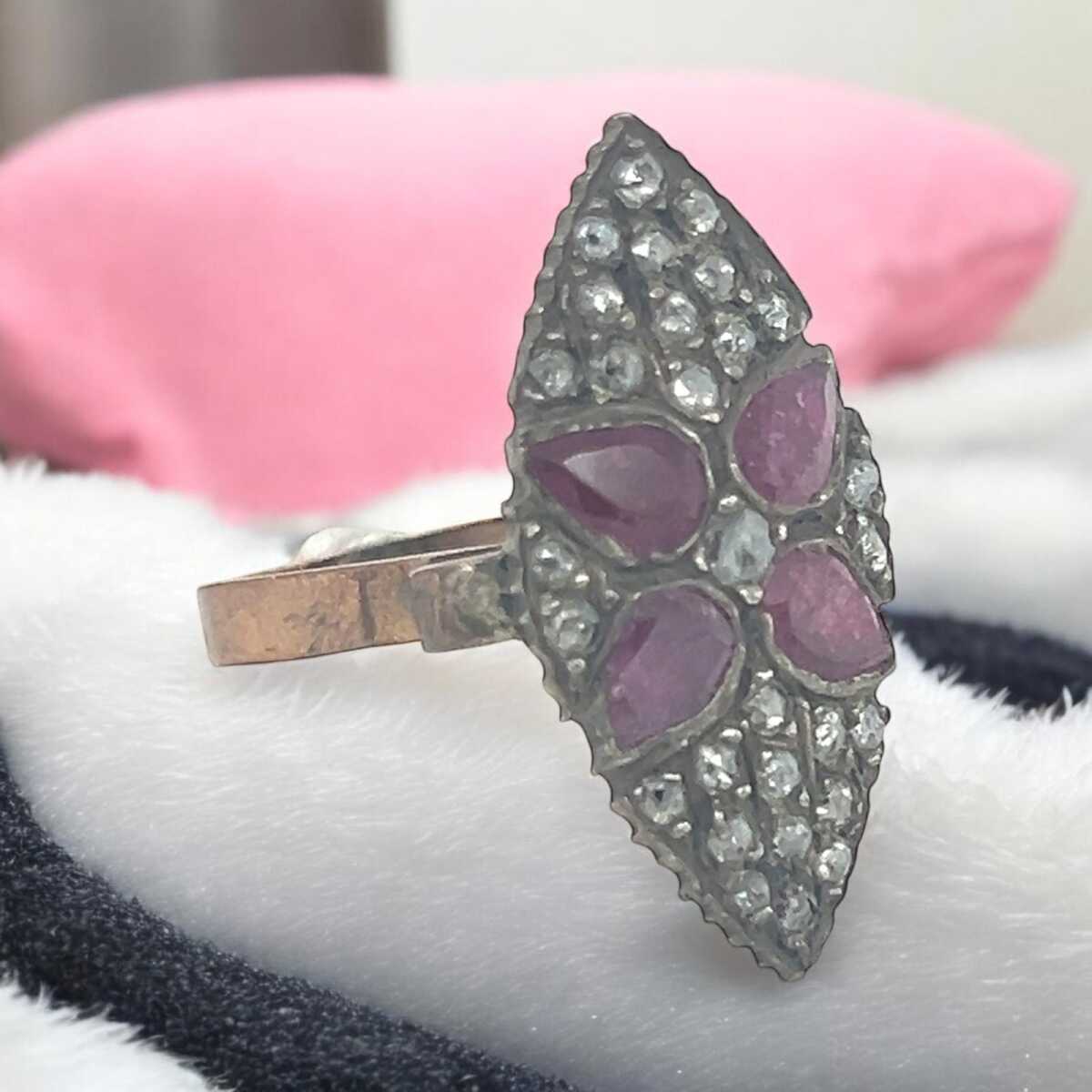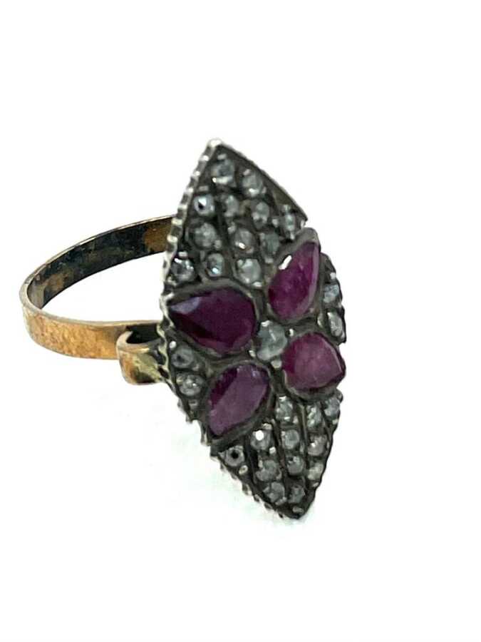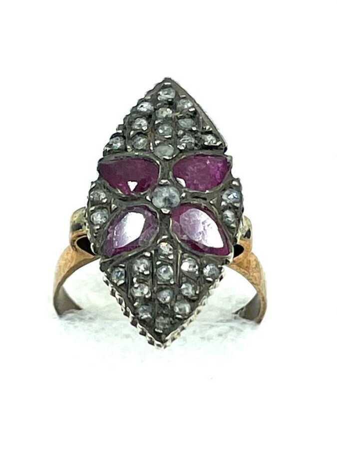 Antika 8 Ayar Elmas ve Yakut Taşlı Yüzük ELM203 #3.82