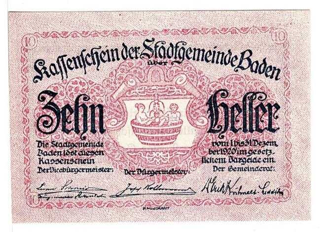 Avusturya 10 Heller 1920 ÇİL *Baden* YKP5823