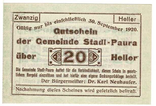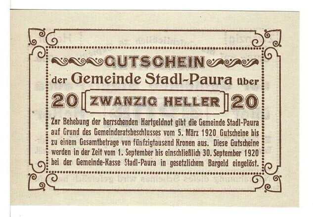 Avusturya 20 Heller 1920 ÇİL *Stadl-Paura* YKP5772