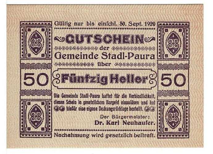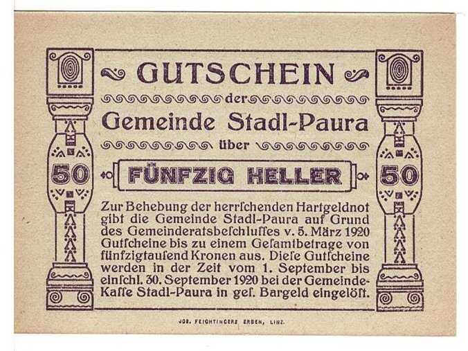 Avusturya 50 Heller 1920 ÇİL *Stadl - Paura* YKP5809