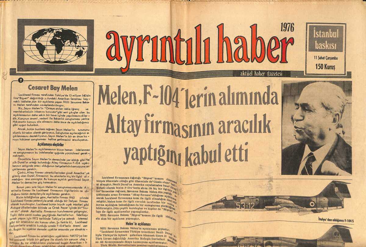 Ayrıntılı Haber Gazetesi 11 Şubat 1976 - Melen , F-104'lerin Alımında Altay Firmasının Aracılık Yaptığını Kabul Etti GZ147278
