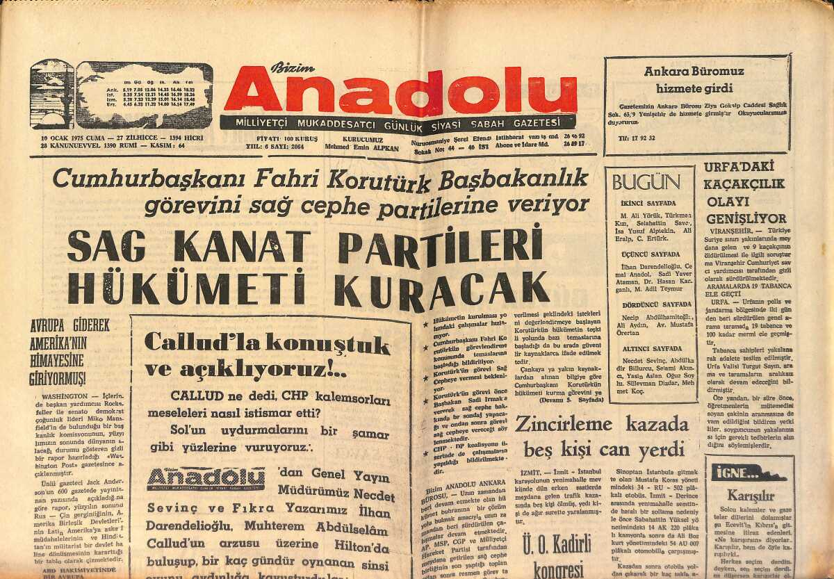 Bizim Anadolu Gazetesi 10 Ocak 1975 - Dış Ödemeler Dengesinde Açıklık Daha da Büyüyor GZ158723
