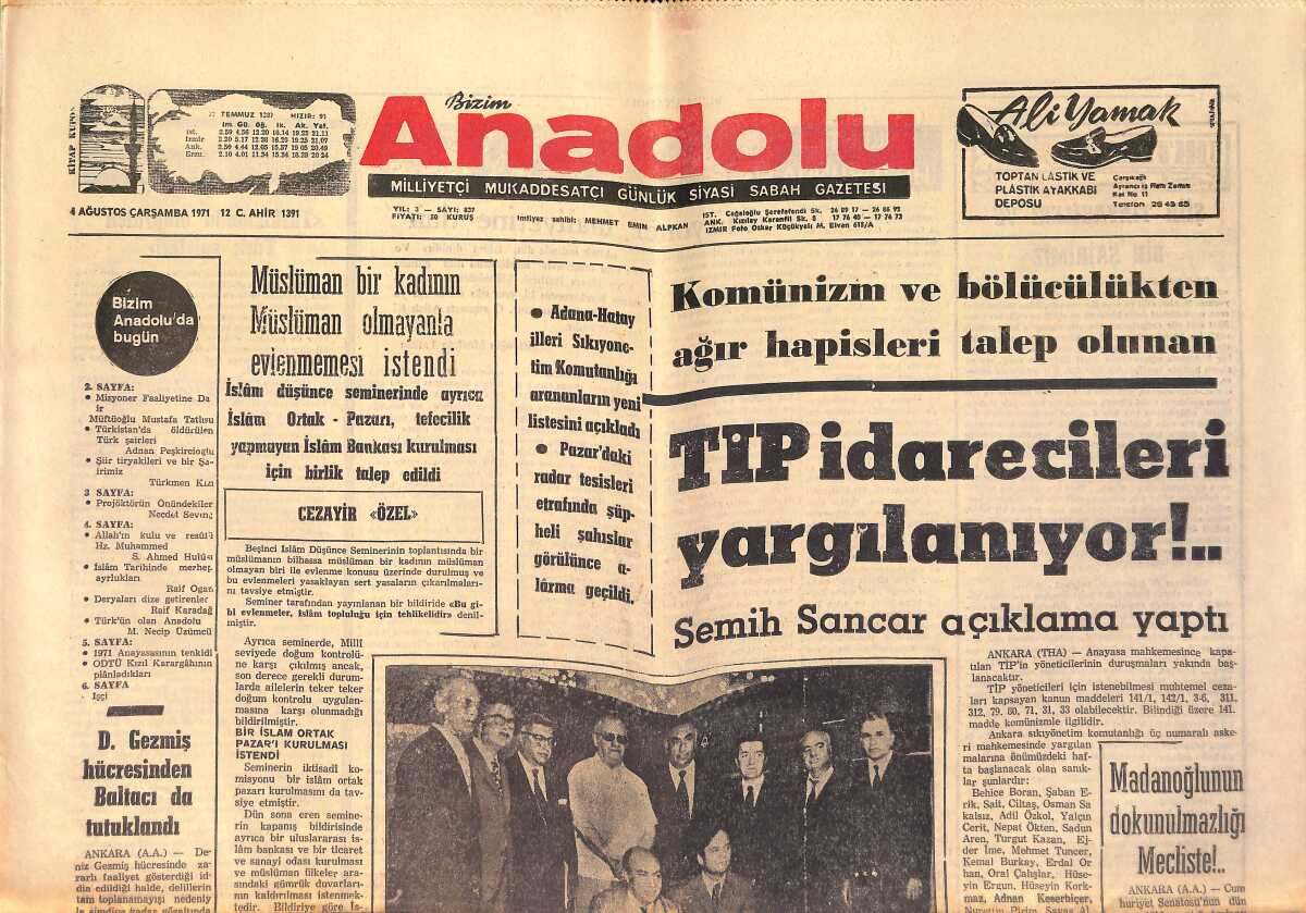 Bizim Anadolu Gazetesi 4 Ağustos 1971 - TİP İdarecileri Yargılanıyor - Madanoğlu'nun Dokunulmazlığı Mecliste !.. GZ158686