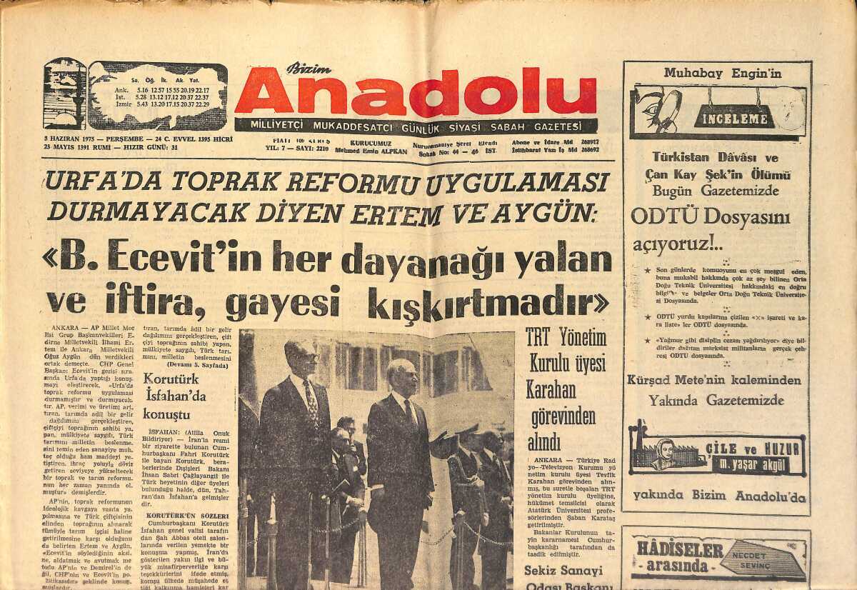 Bizim Anadolu Gazetesi 5 Haziran 1975 - TRT Yönetim Kurulu Üyesi Karahan Görevinden Alındı GZ158719