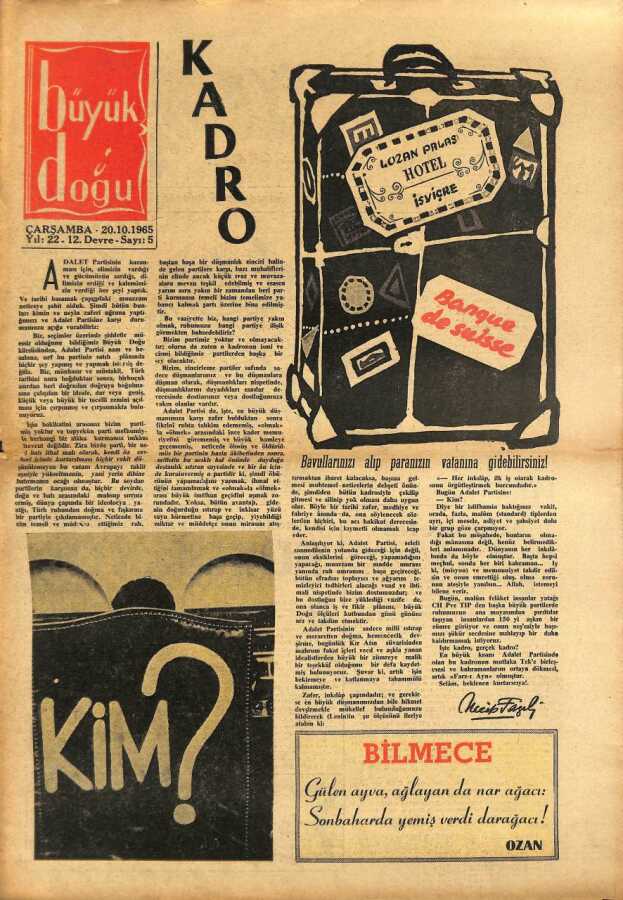 BÜYÜK DOĞU DERGİSİ - Siyasi ve Edebi Mecmua Sayı5 - 20 Ekim 1965 Şükrü Koç Yazarı Fethi Tevetoğlu, Alyans Apartmanları Ve Alyanslar (İlk Basım) NDR66837
