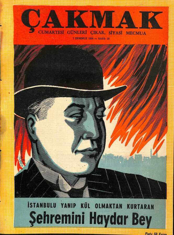 Çakmak - Cumartesi Günleri Çıkar ,Siyasi Mecmua 7 Temmuz 1956 İstanbulu Yanmaktan Kurtaran Şehremini Haydar Bey NDR54351