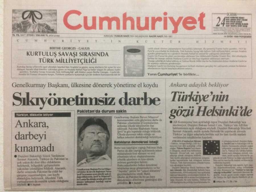 Cumhuriyet Gazetesi 14 Ekim 1999 - Sıkıyönetimsiz Darbe GZ48517