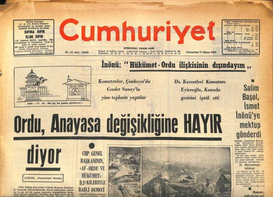 Cumhuriyet Gazetesi 17 Mayıs 1969 - Salim Başol , İsmet İnönüye Mektup Gönderdi GZ86897