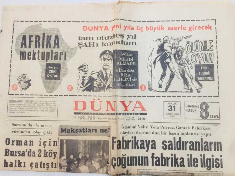 Dünya Gazetesi 31 Aralık 1969 - Galatasaray Kalesinde Yasin Oynuyor GZ53274