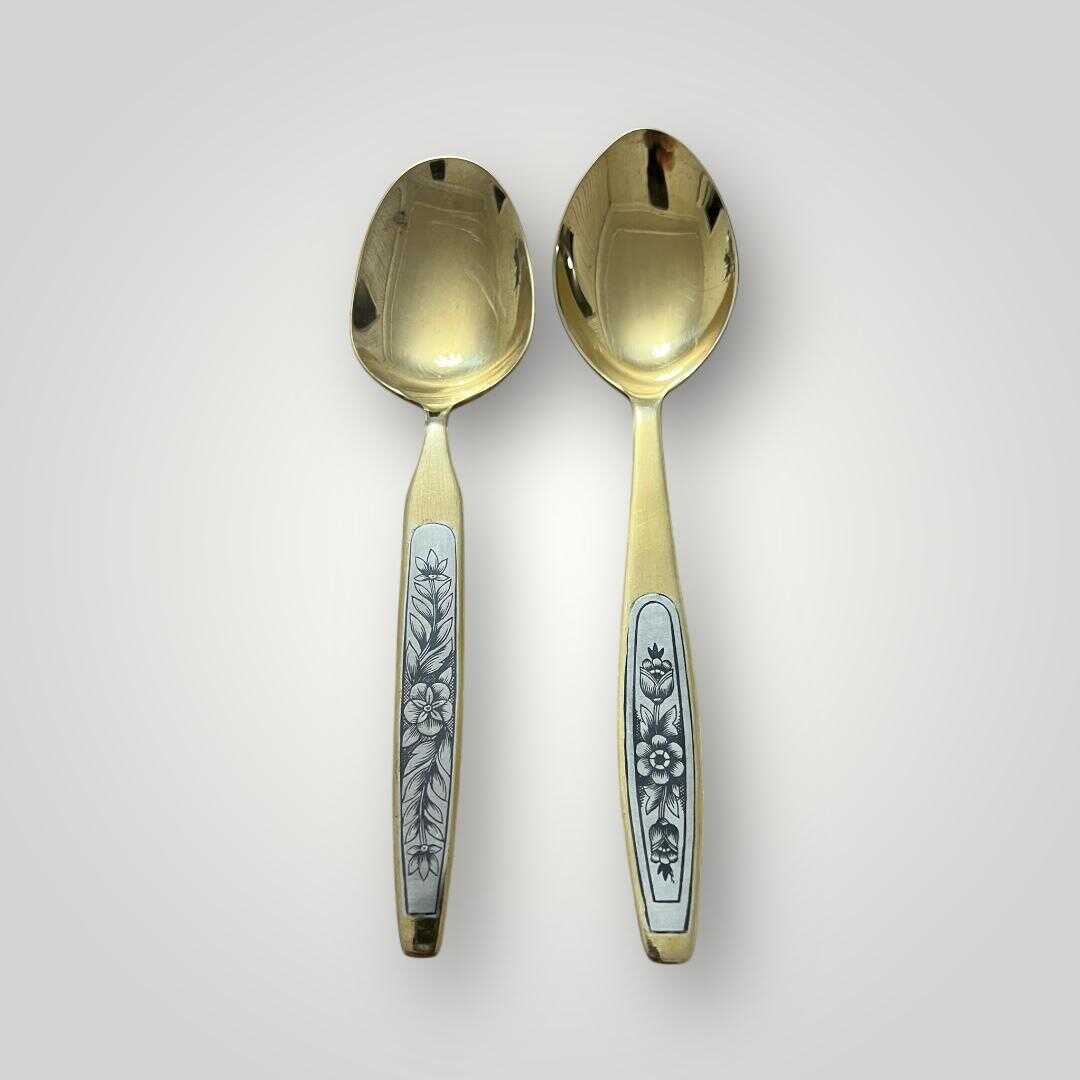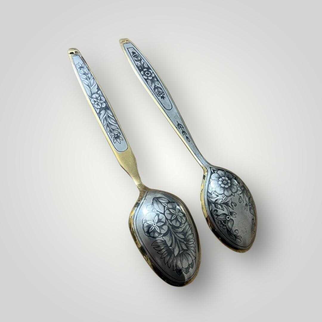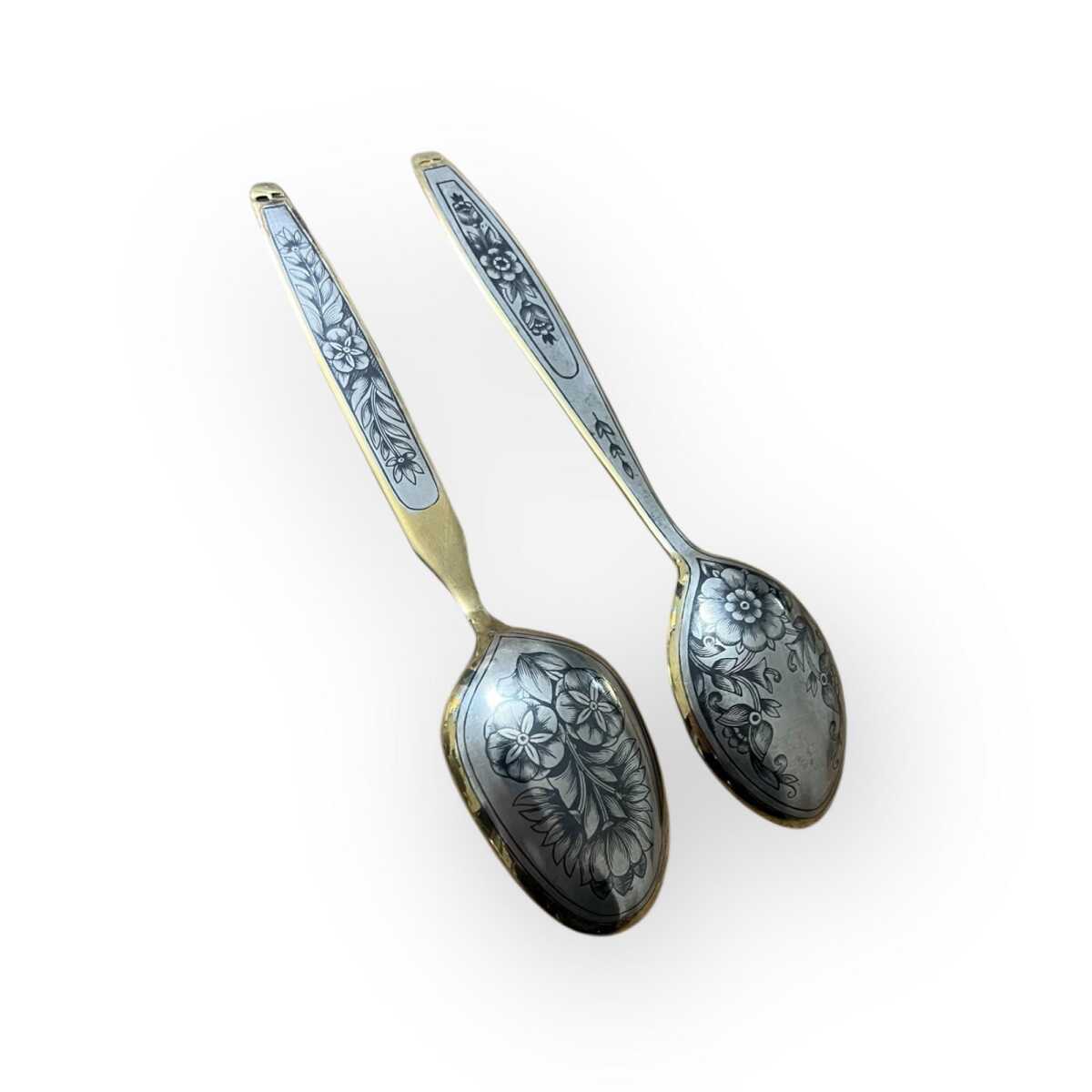 Gelince Haber VerEski Rus üretimi, 84 damgalı gümüşten imal edilmiş, savat (niello) işçilikli 2 adet kaşıktan oluşan zarif settir.
