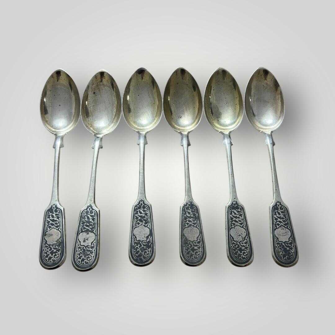 Eski Rus Gümüş Savatlı Damgalı Kaşık 6 Adet AOB6065