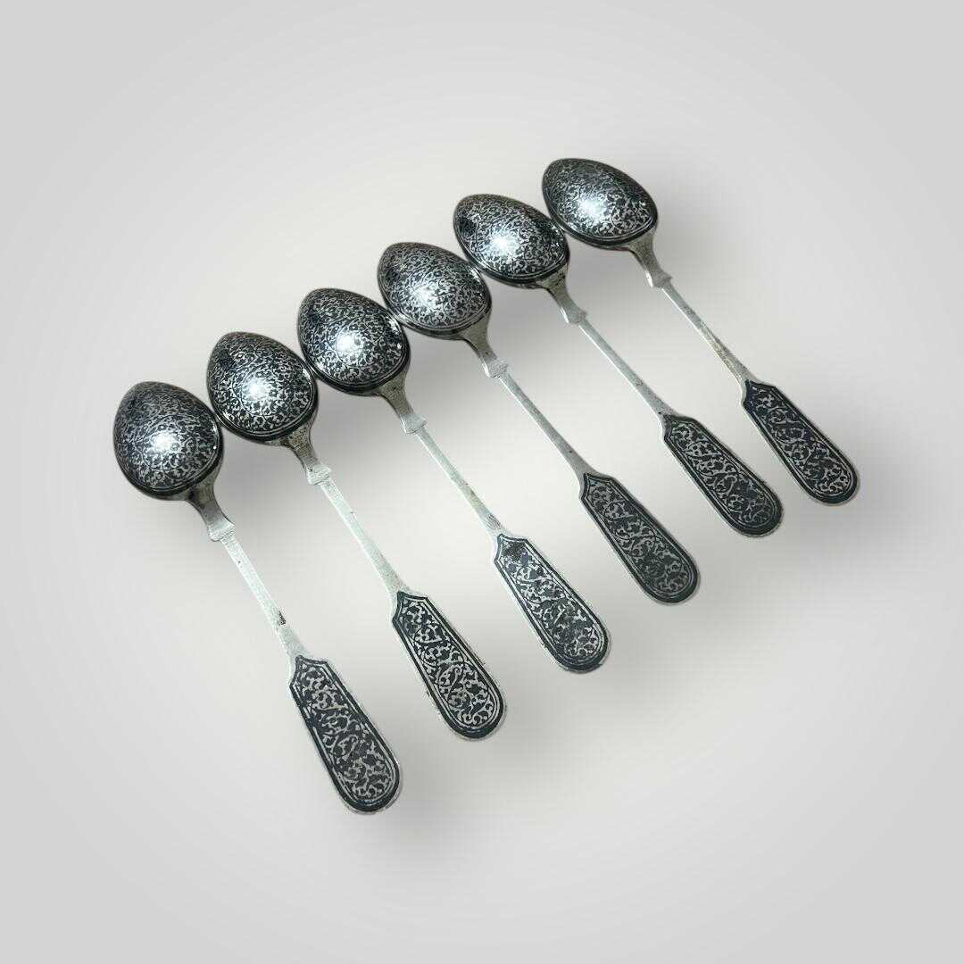 Antika Eski Gümüş Çay Kaşığı Seti (6 Adet) AOB1733