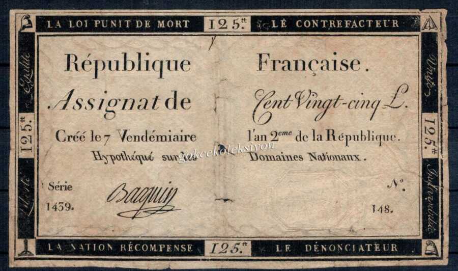 Fransa 1793 125 Livres ÇT *Büyük Boy* YKP1585