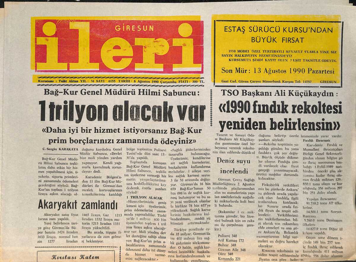 Giresun İleri Gazetesi 8 Ağustos 1990 - Y. Selim Başar Görelespor'a Fahri Başkan Seçildi - Sanayispor'u 1990-91 Sezonunda İsmet Gürel Çalıştıracak GZ158960