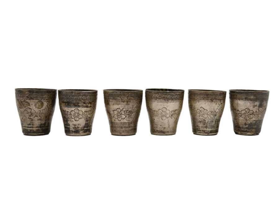 Rus Damgalı Kalem İşi 1 Çift Gümüş Kahve Fincanı AOB3835