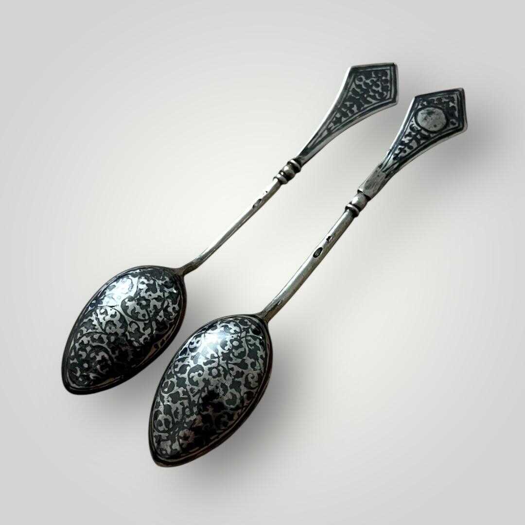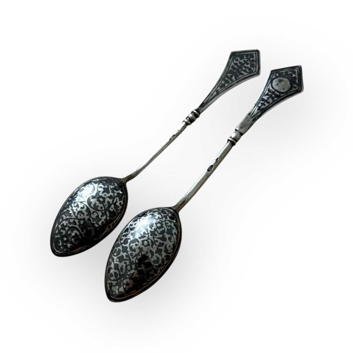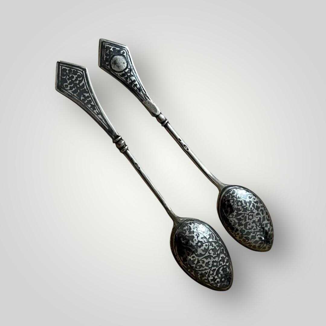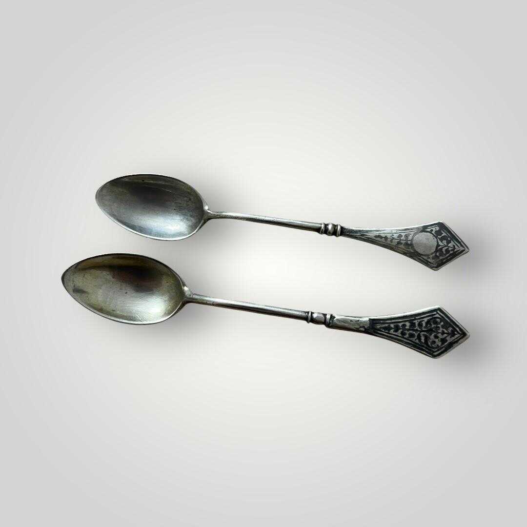 Eski Rus Gümüş Savatlı Damgalı Kaşık 2 Adet AOB6067