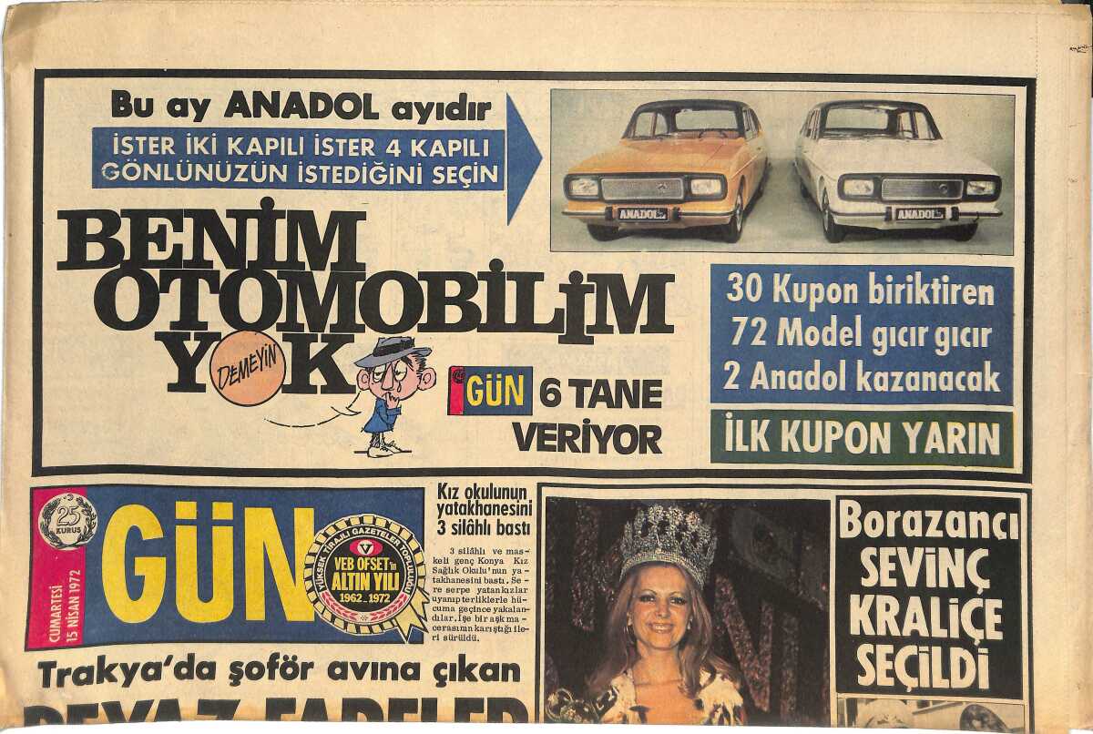 Gün Gazetesi 15 Nisan 1972 - Borazancı Sevinç Kraliçe Seçildi - Mylene Demongeot Sinemanın En Rahat Soyunan Kadınıdır GZ144930