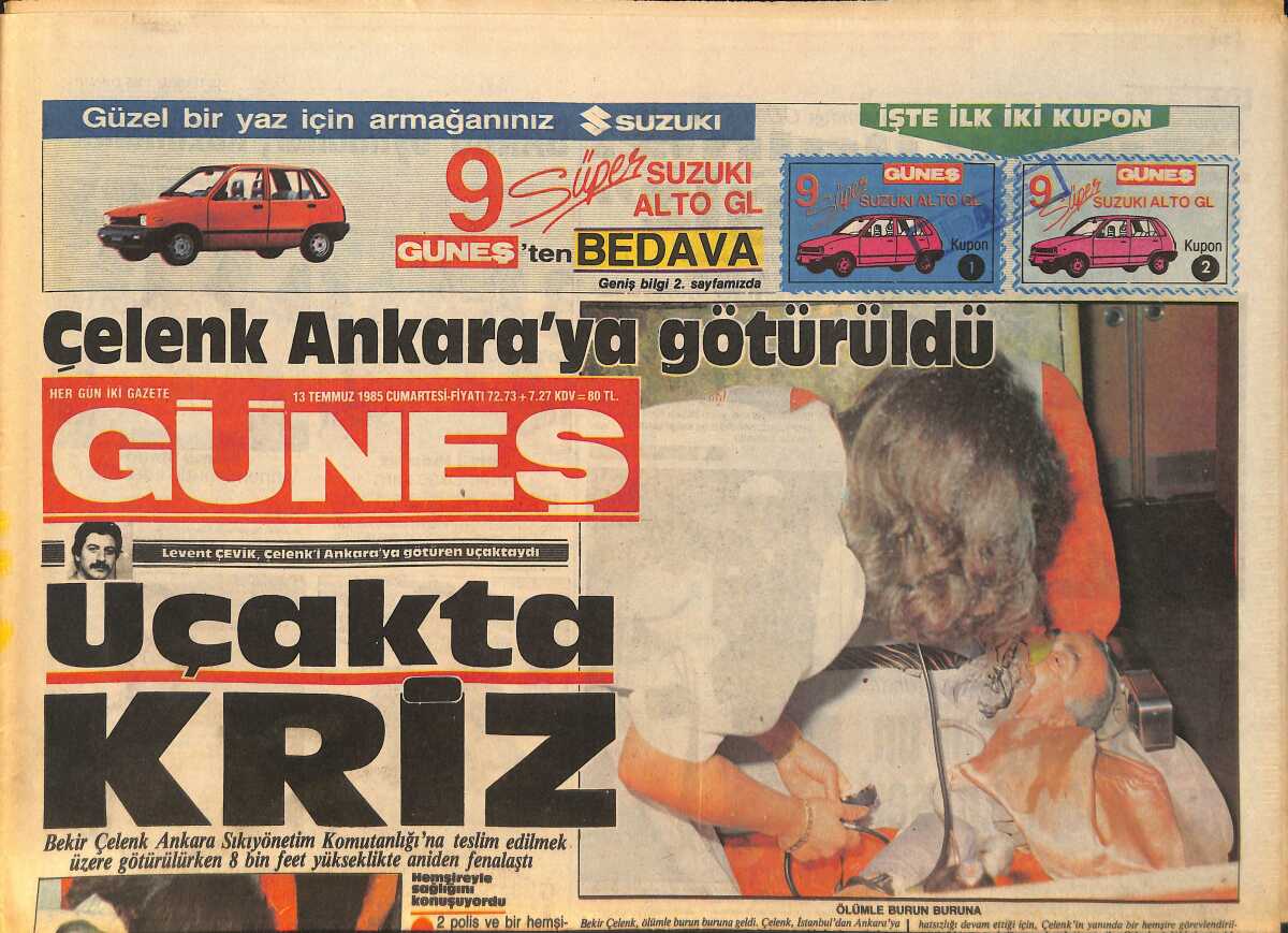 Güneş Gazetesi 13 Temmuz 1985 - Başbakan Özal'ın Oğlu İle Gönül Yazar'ın Kızı Beraberler - Milliyetçi Demokrat Partisi Kongre Öncesinde Kavga Çıktı GZ158193
