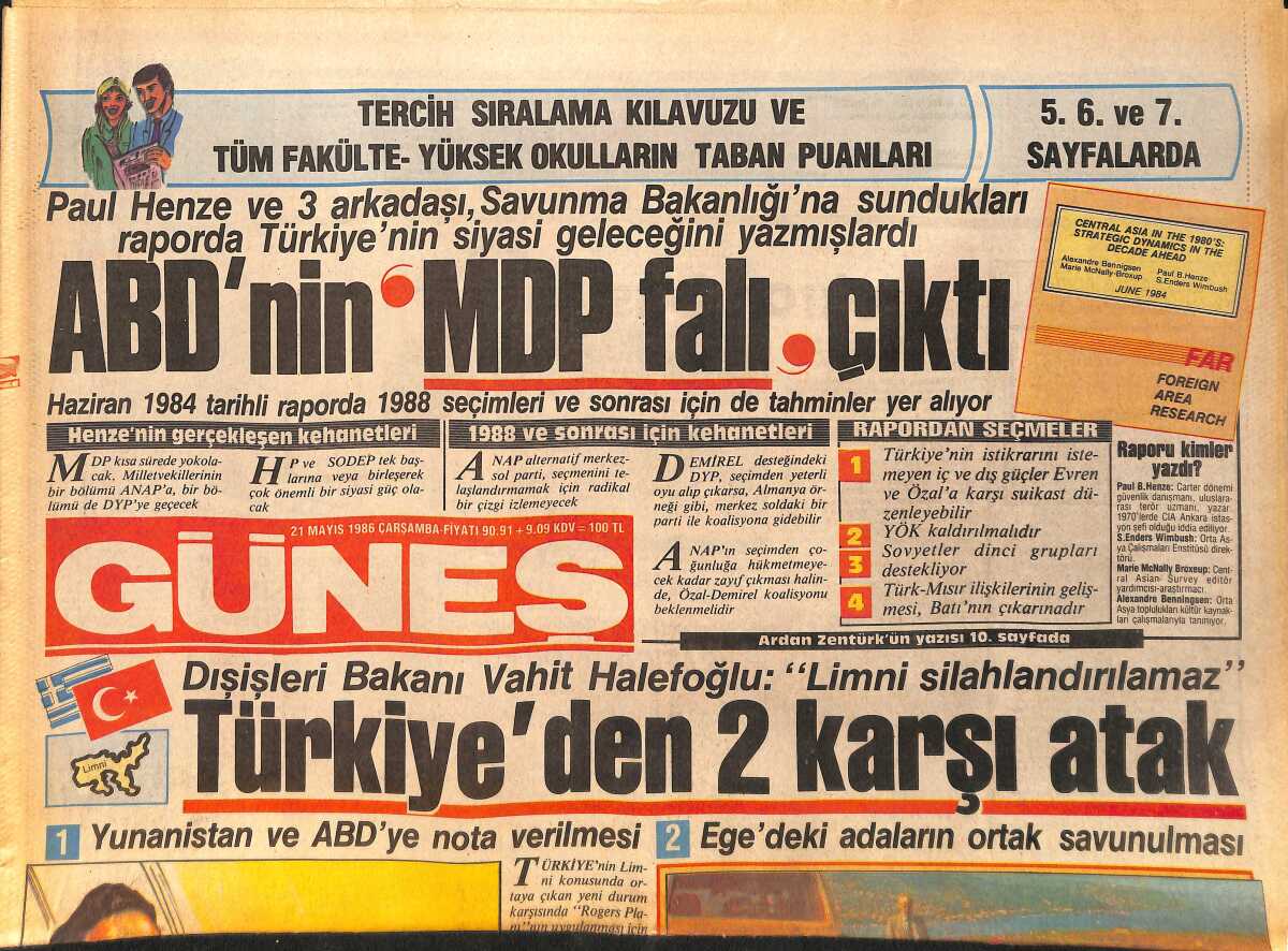 Güneş Gazetesi 21 Mayıs 1986 - Özbek Açık Pazar Ekonomisini Eleştirdi " Çiftçi Perişan " - Evren, Kıyak Emekliliği Onayladı GZ158295
