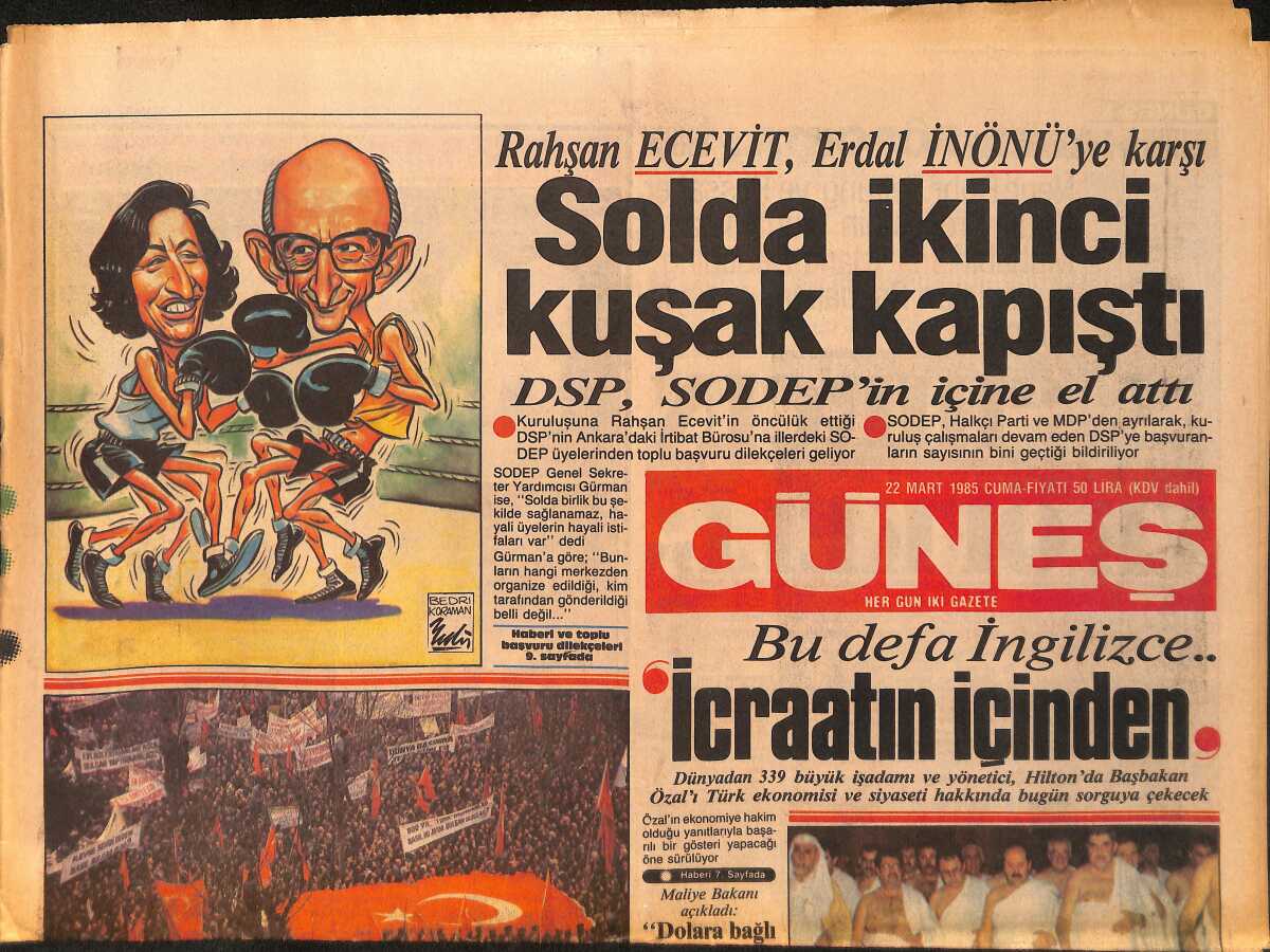 Güneş Gazetesi 22 Mart 1985 - Galatasaray'da Bir Mutlu Bir Sorun Adam " Simoviç " - Anayasa Mahkemesi " DYP'ye İhtarı Reddetti " GZ158174