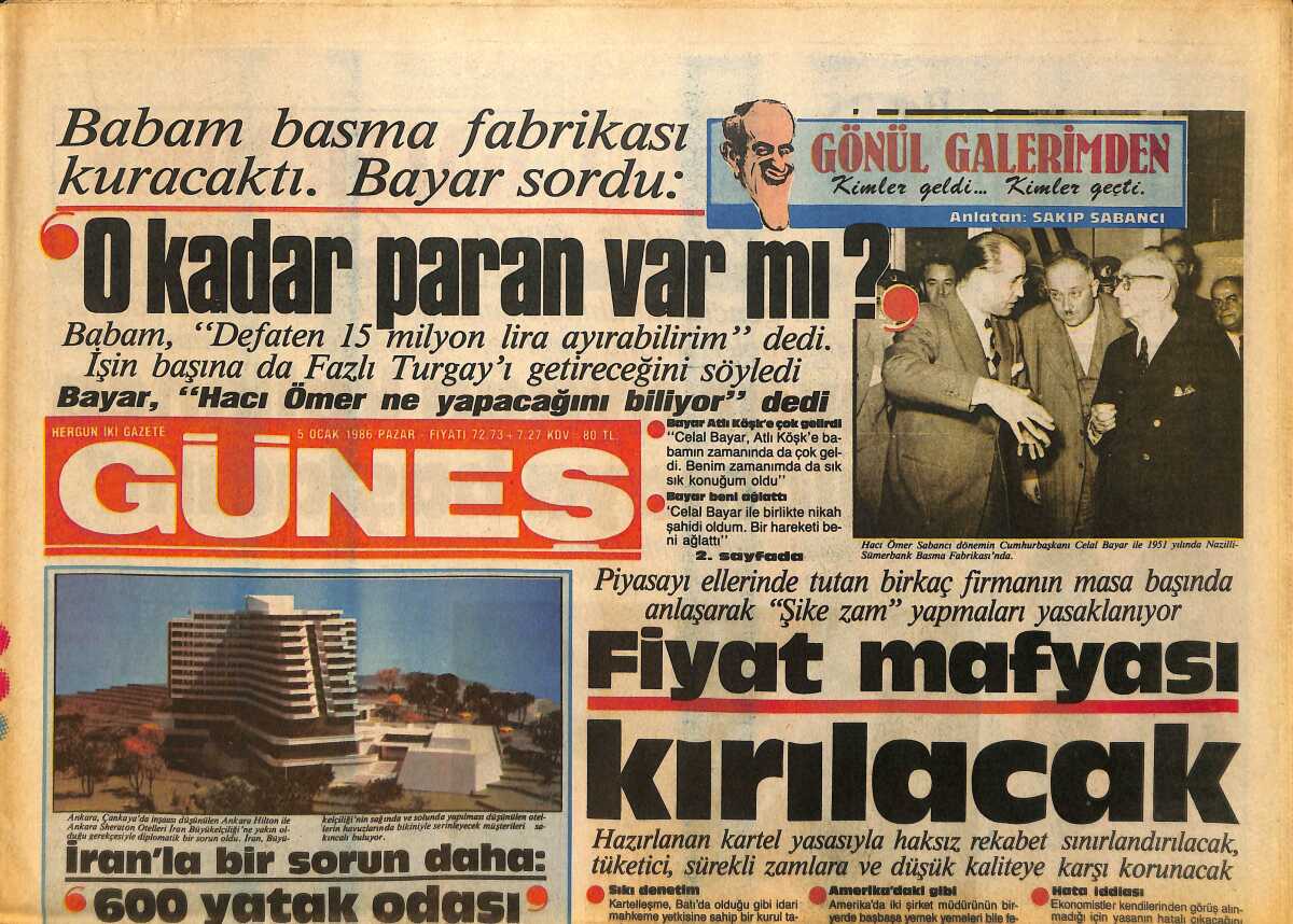 Güneş Gazetesi 5 Ocak 1986 - İran'la Bir Sorun Daha : 600 Yatak Odası - Galatasaray Aranıyor GZ157724