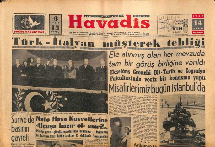 Havadis Gazetesi 14 Kasım 1957 - Suriyede Basının Gayreti GZ83157