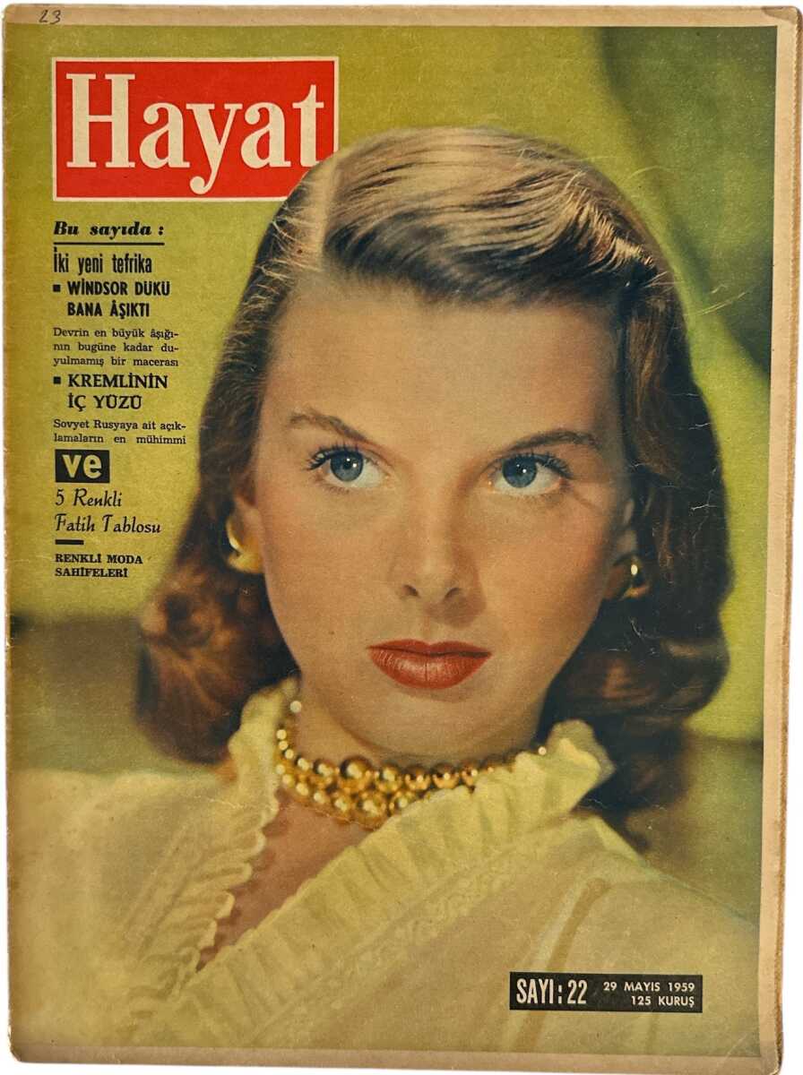 Hayat Dergisi 29 Mayıs 1959 Sayı :22- Kapak: Genç Kadın Portresi Camera Clix - Kremlinin İç Yüzü - Margaret'le Şah Hakkındaki Dedikodular NDR91352