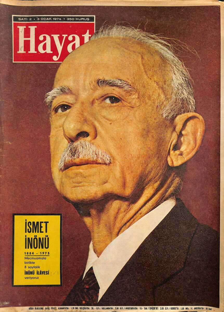 Hayat Dergisi 3 Ocak 1974 Sayı: 2 - Kapak: İsmet İnönü - Beyoğlu'nun Göbeğindeki Küçük Moskova - İnönü'nün Son Yolculuğu NDR90053