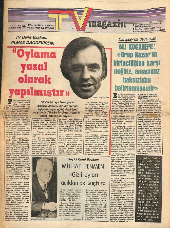 Hey TV Magazin Dergisi 13 Şubat 1978 Sayı14 İlhan İremi Yapımcılar Kaçırdı! - Anadolu Majör e Adaletsizlik Yapılmıştır NDR82018